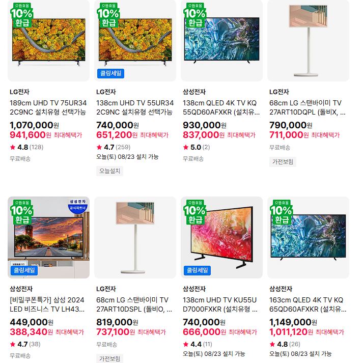 할인 품목 : 전자레인지, 모니터, 냉장고 등