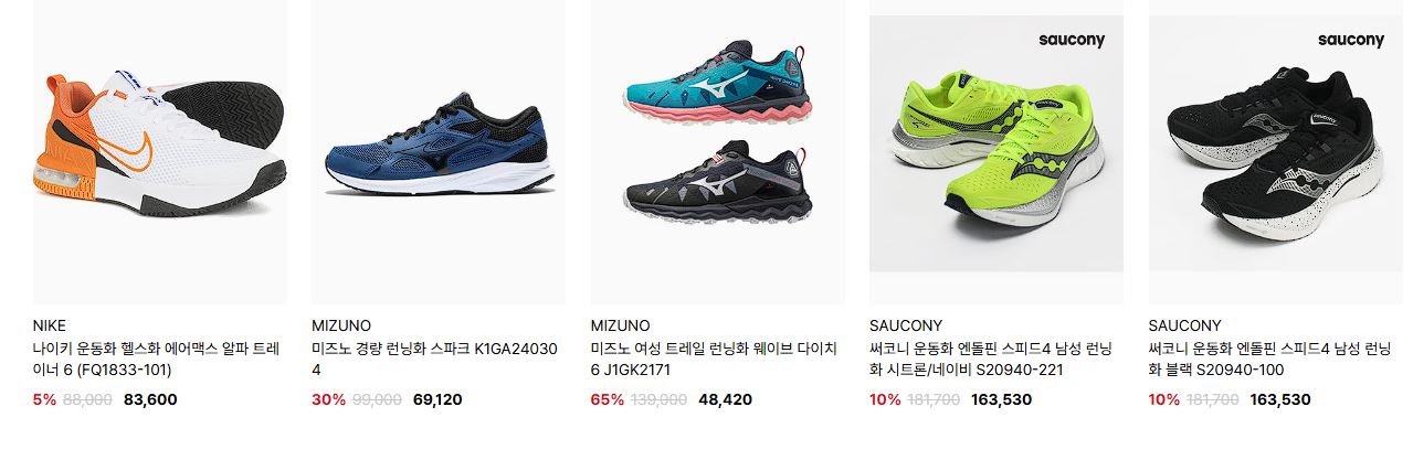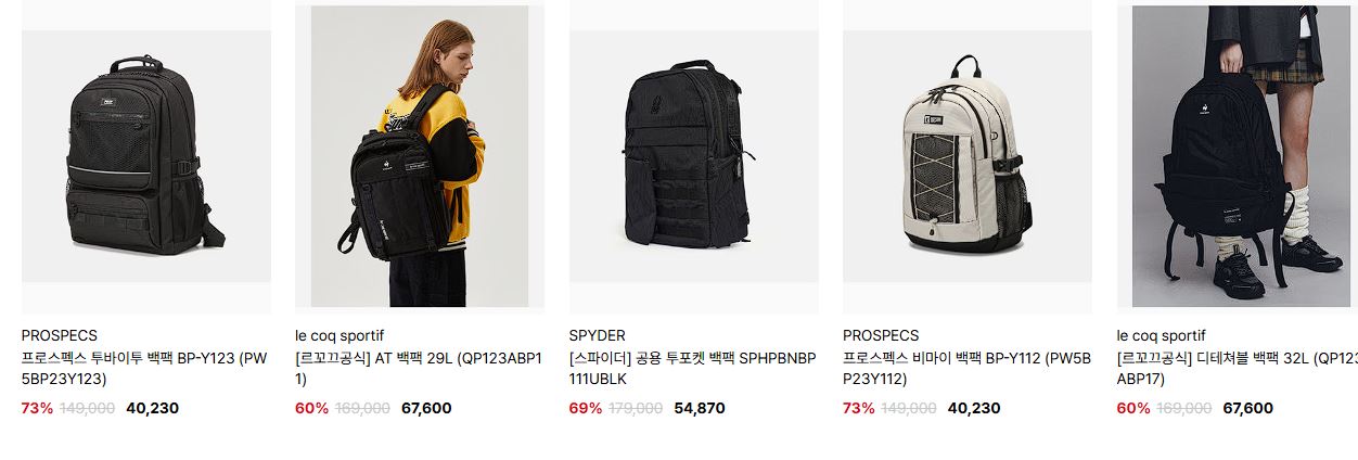 할인 품목 : 운동화, 백팩 등