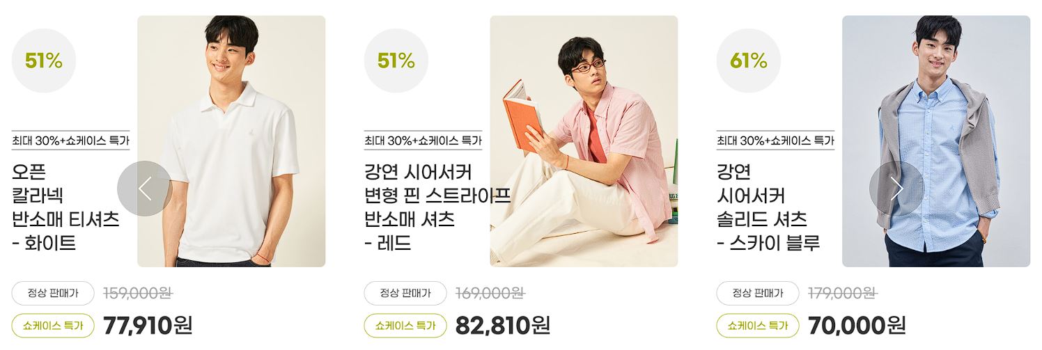 할인 품목 : 티셔츠, 셔츠, 가방 등