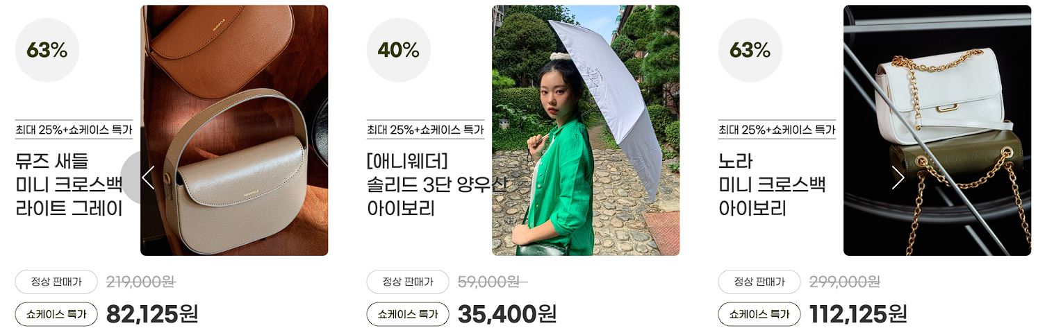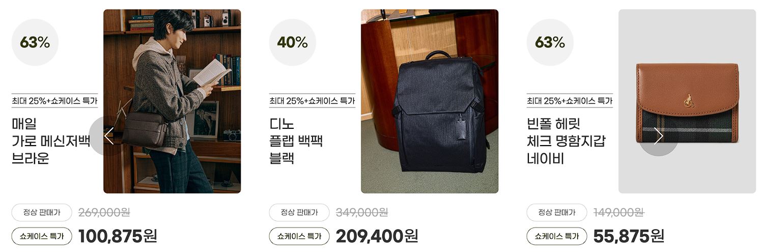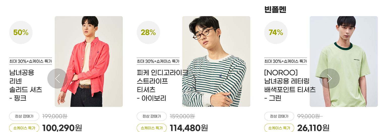할인 품목 : 티셔츠, 셔츠, 가방 등
