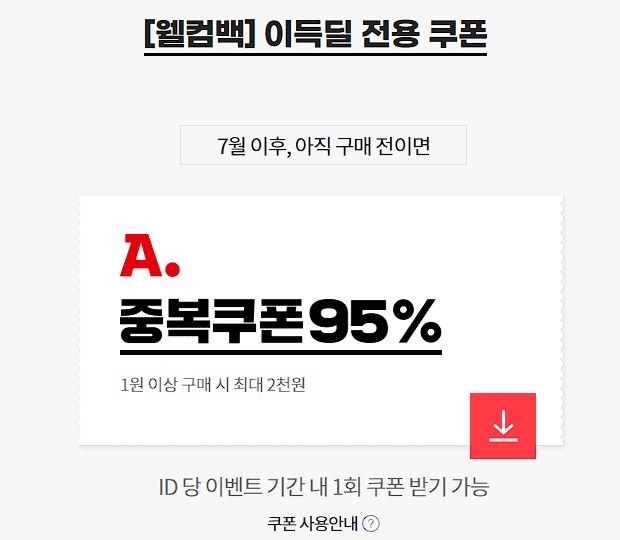 중복쿠폰 95% 할인 (최대 2천원 할인)