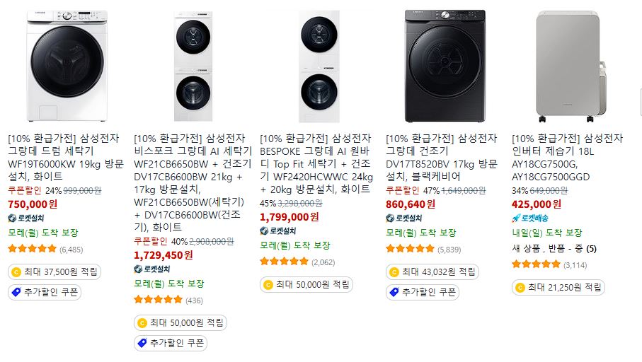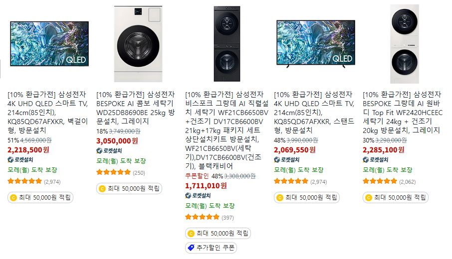할인 품목 : 세탁기, 식기세척기, TV 등