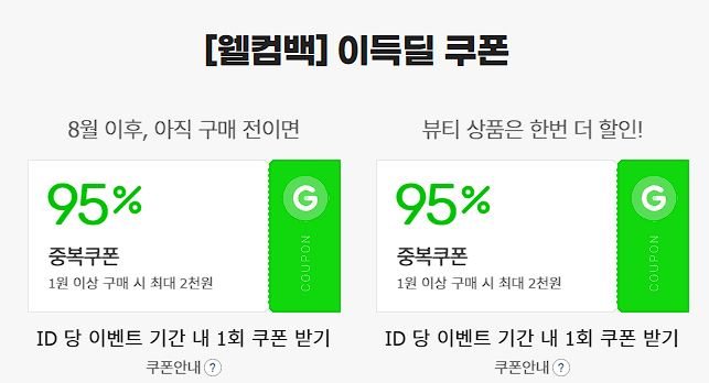 최대 95% 할인 쿠폰 (최대 2000원 할인)