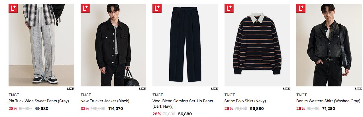 할인 품목 : 자켓, 팬츠, 셔츠 등