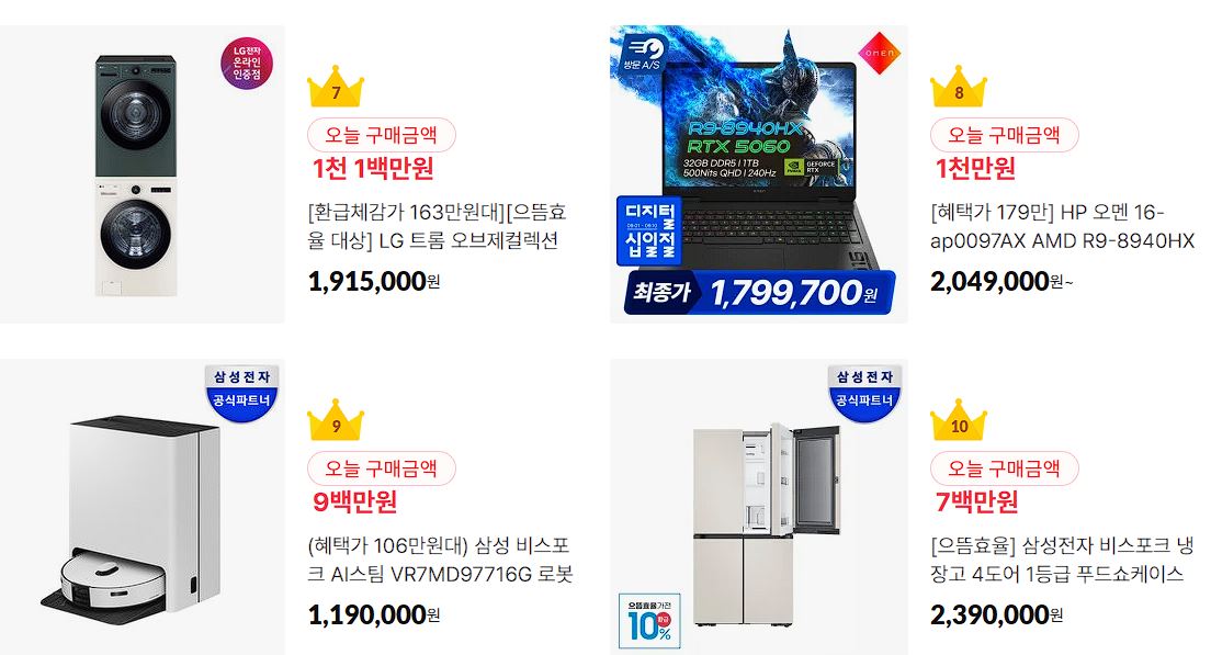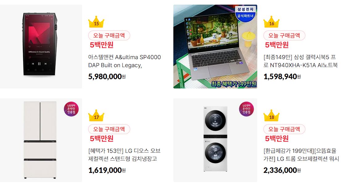 할인 품목 : 냉장고, 노트북, 휴대폰 등