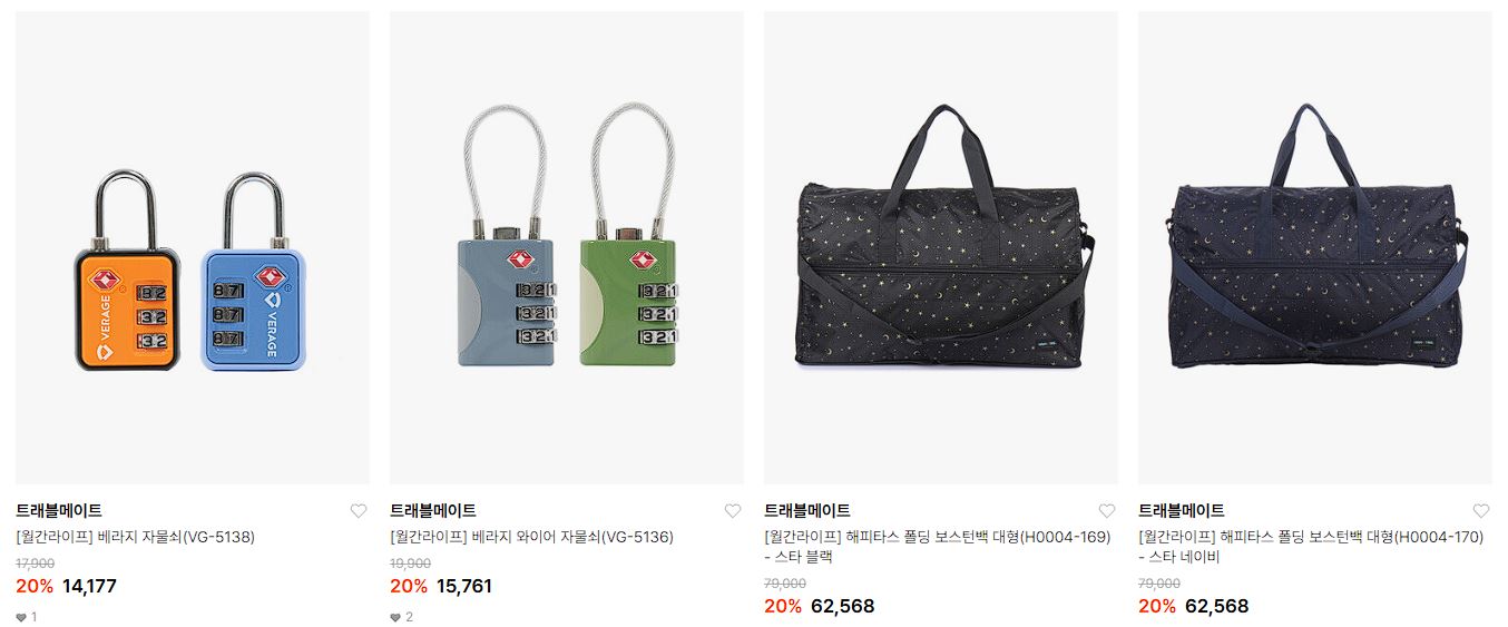 트래블메이트 다양한 제품을 할인 판매하네요.