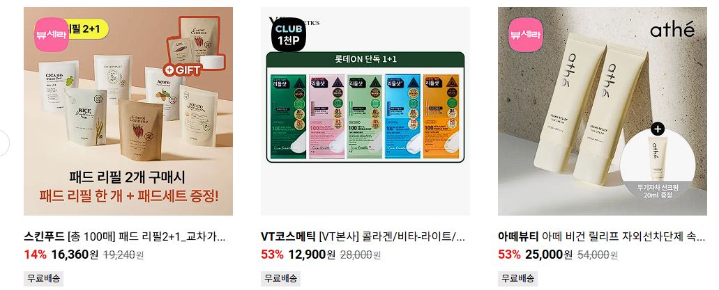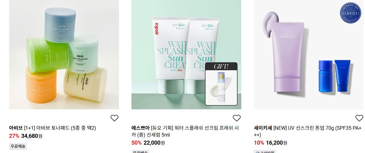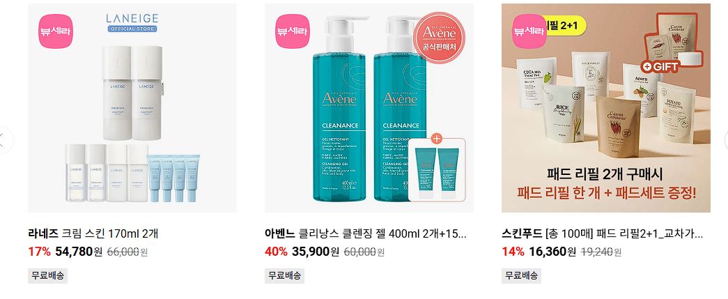 할인 품목 : 스킨, 마스크팩, 클렌징 젤 등