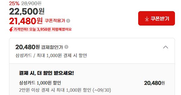 삼성 카드 결제시 20480원