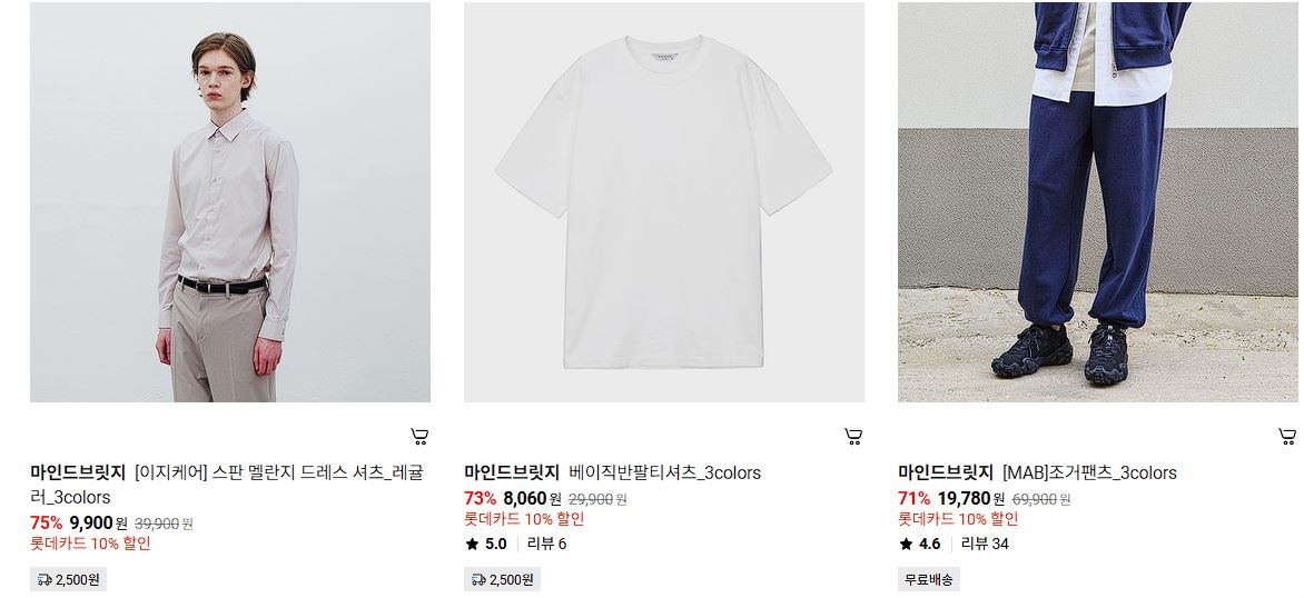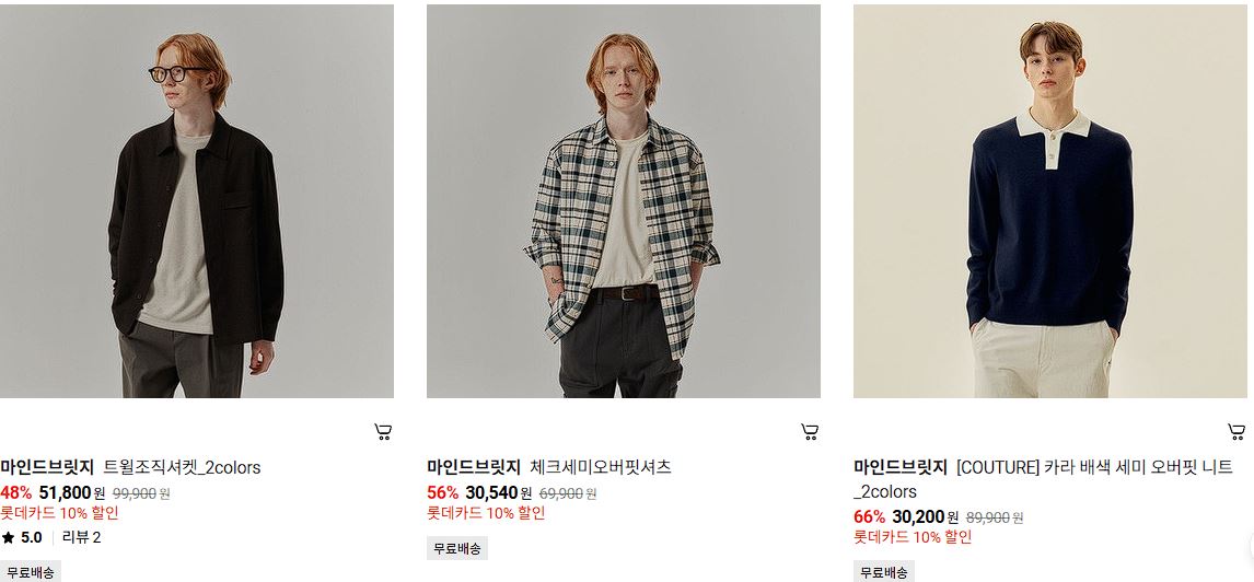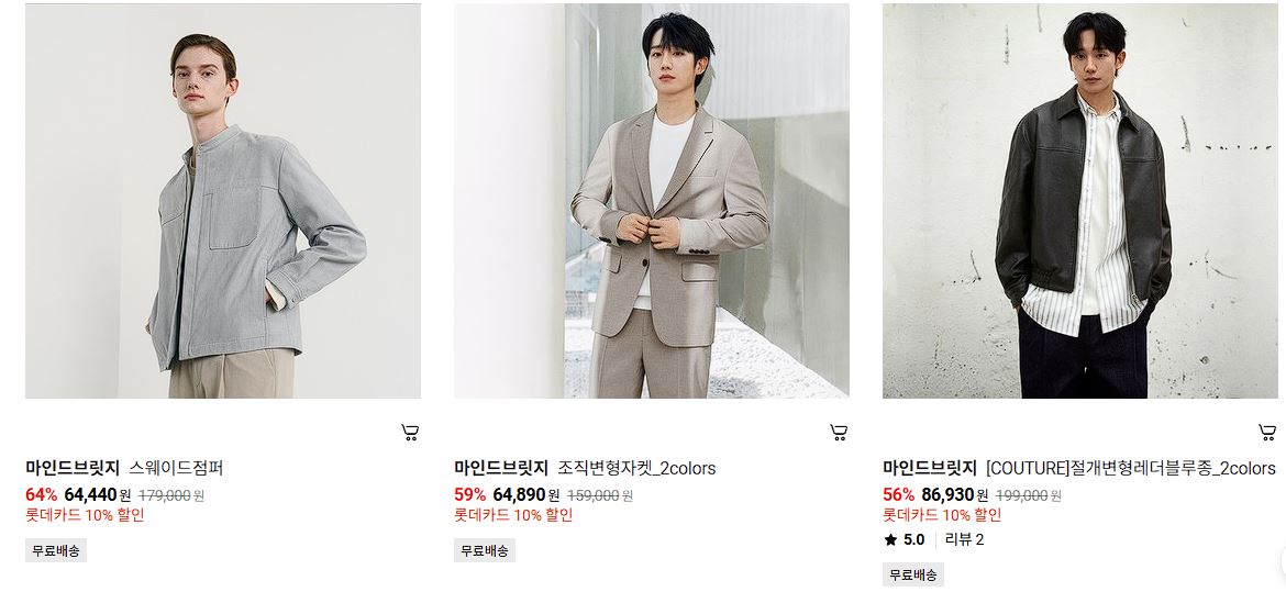 할인 품목 : 자켓, 셔츠, 팬츠 등
