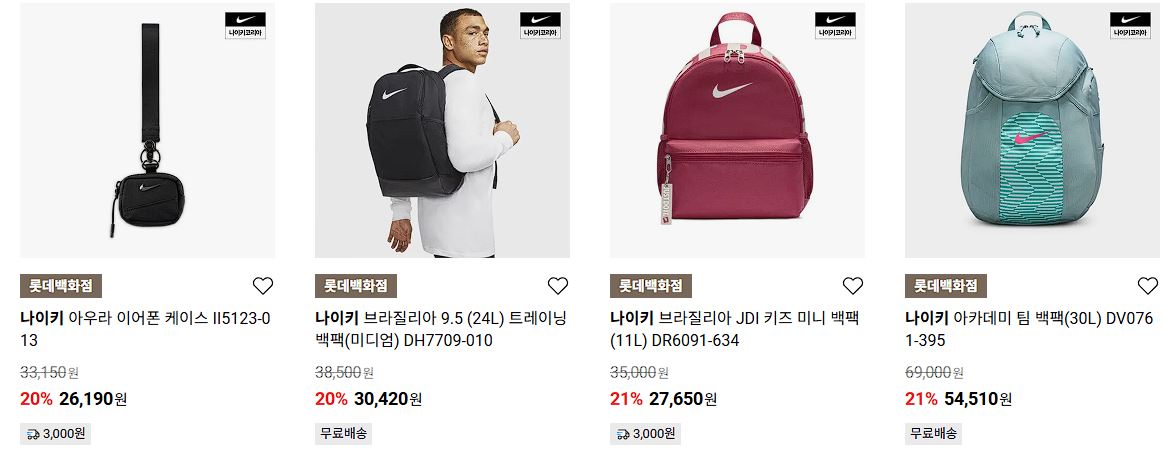 나이키 다양한 제품을 할인 판매하네요.