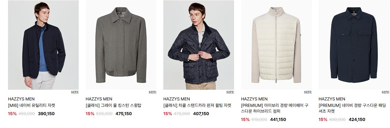 할인 품목 : 티셔츠, 자켓, 점퍼 등