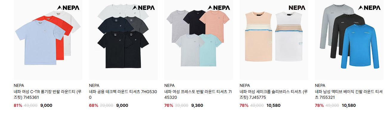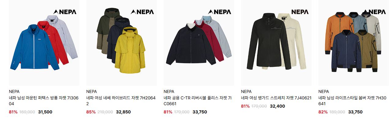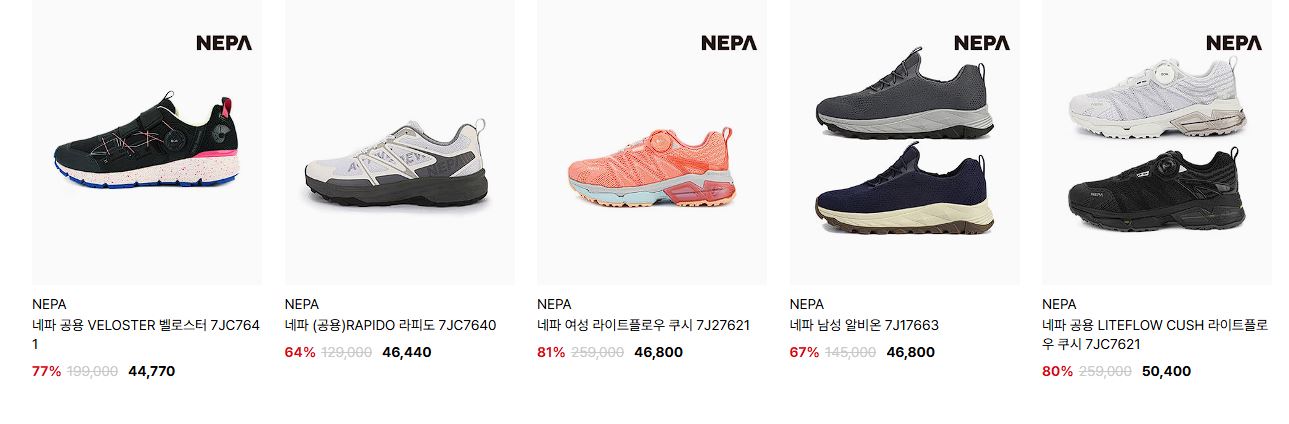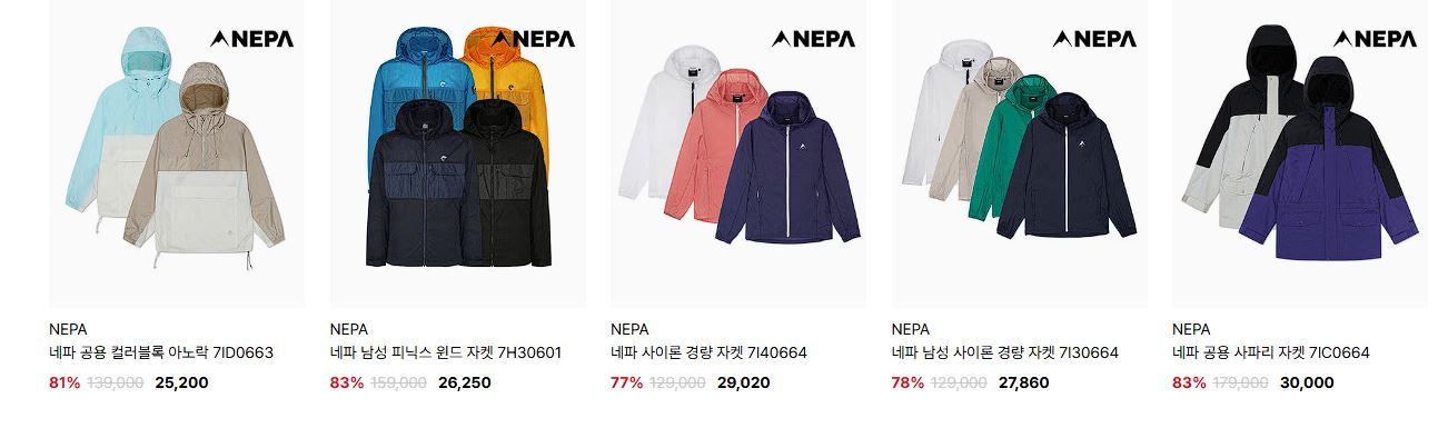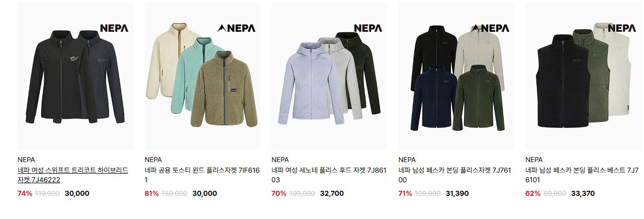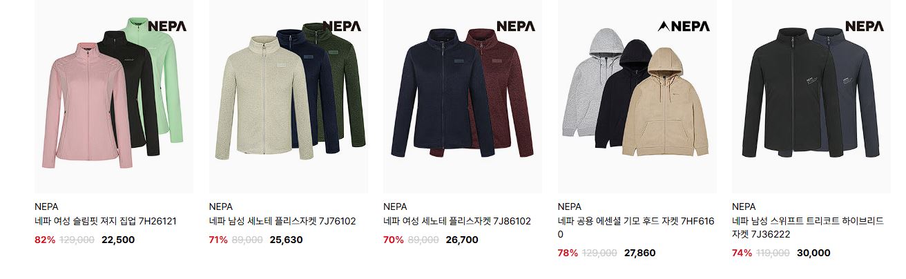 네파 다양한 제품을 할인 판매하네요.
