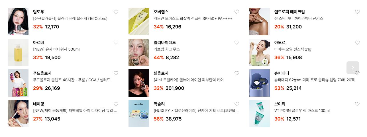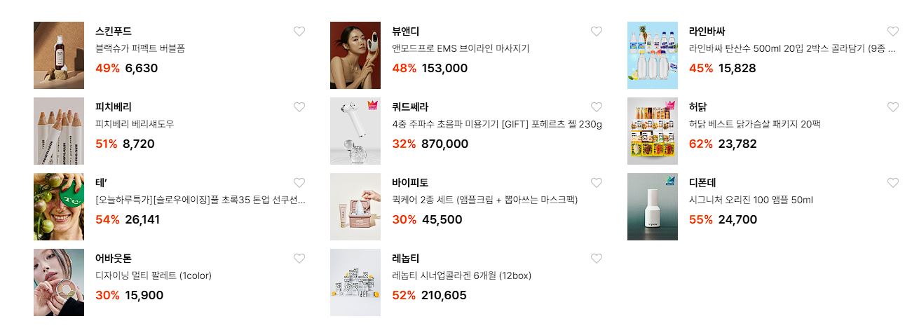할인 품목 : 마스크팩, 마사지기, 바디워시 등