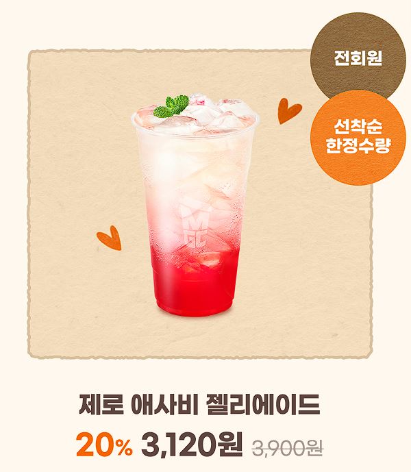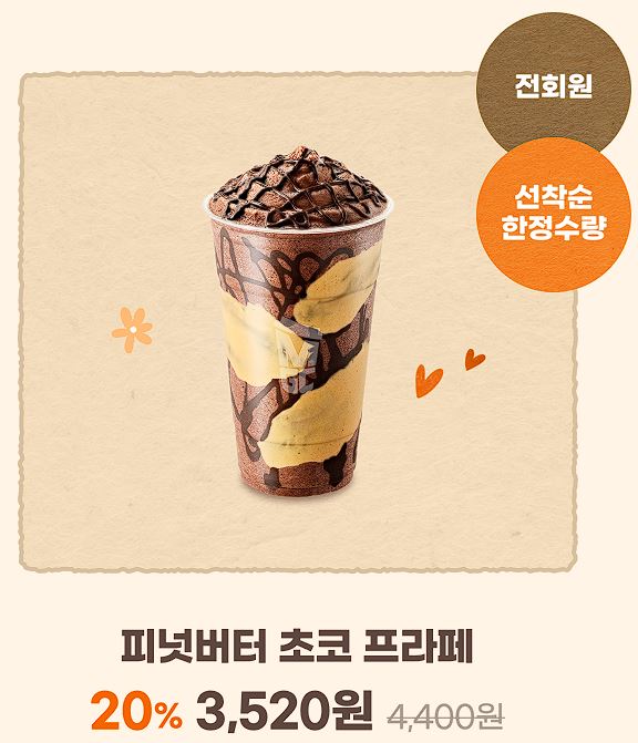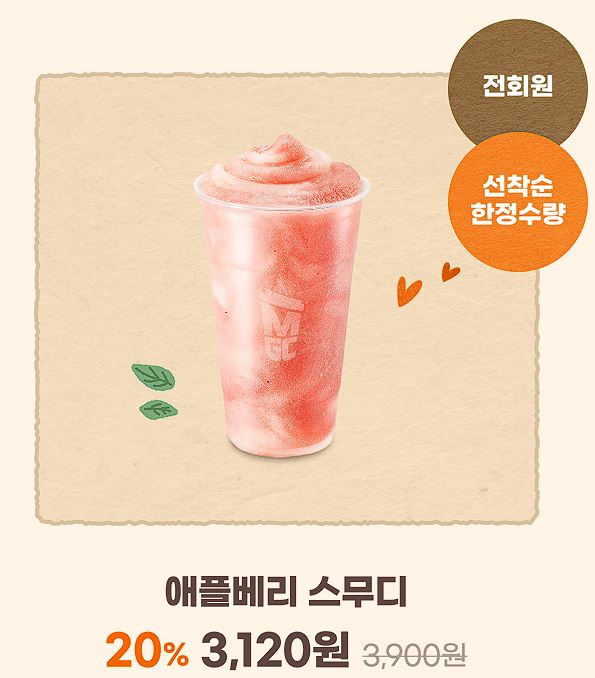 할인 메뉴 : 아이스 아메리카노, 애플베리 스무디 등