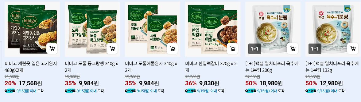 할인 품목 : 고기완자, 만두, 햇반 등