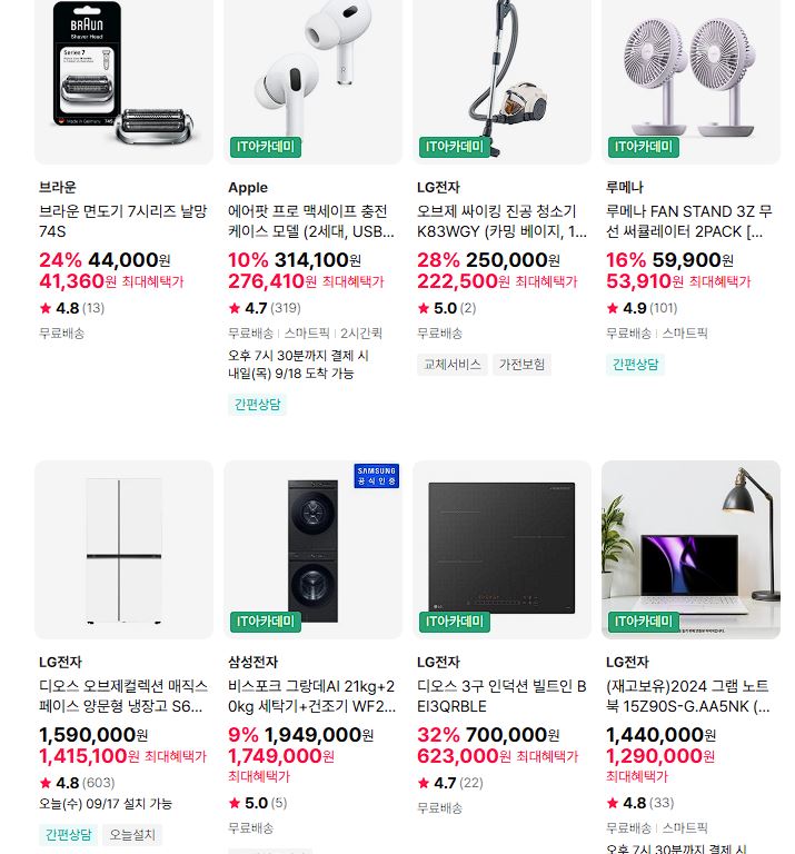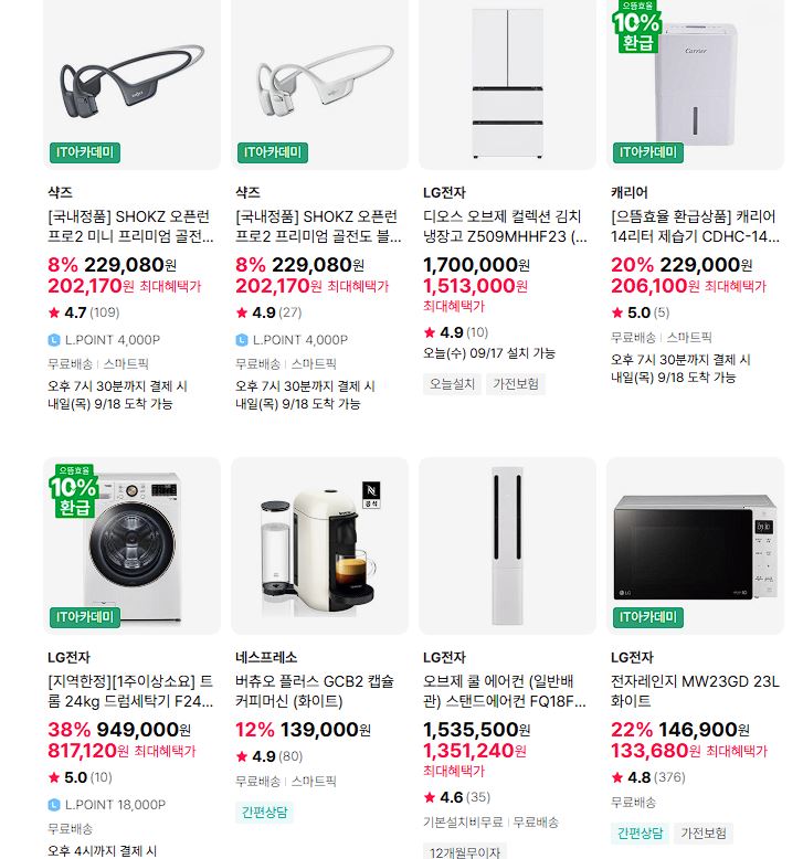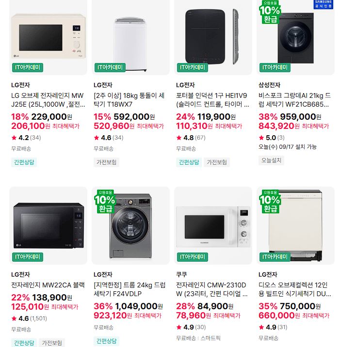 할인 품목 : 냉장고, 세탁기, 전자레인지 등