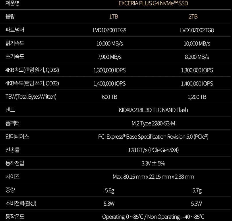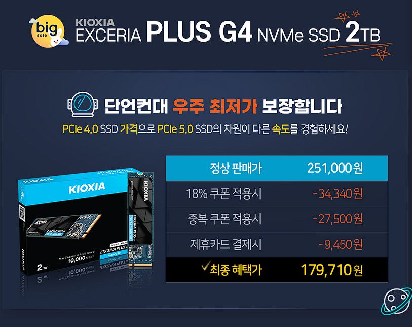키오시아 EXCERIA PLUS G4 NVMe SSD 2TB 할인 정보 [링크]