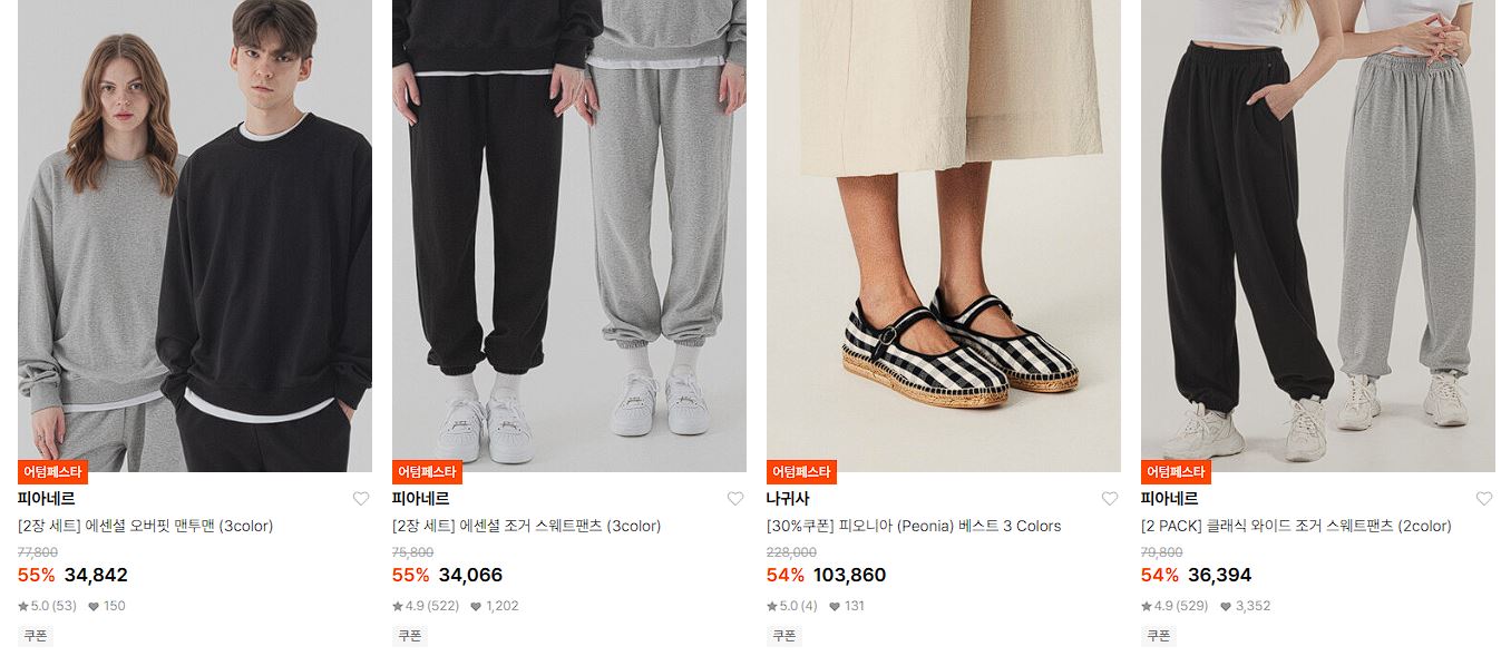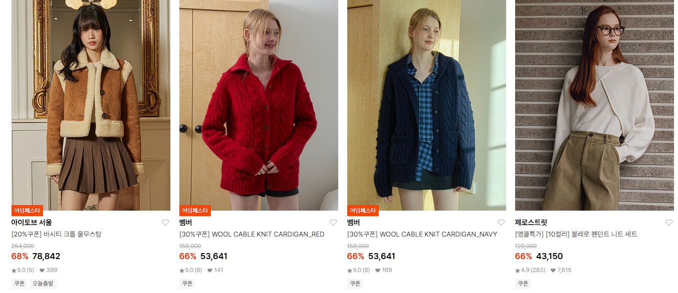 할인 품목 : 가디건, 자켓, 팬츠 등
