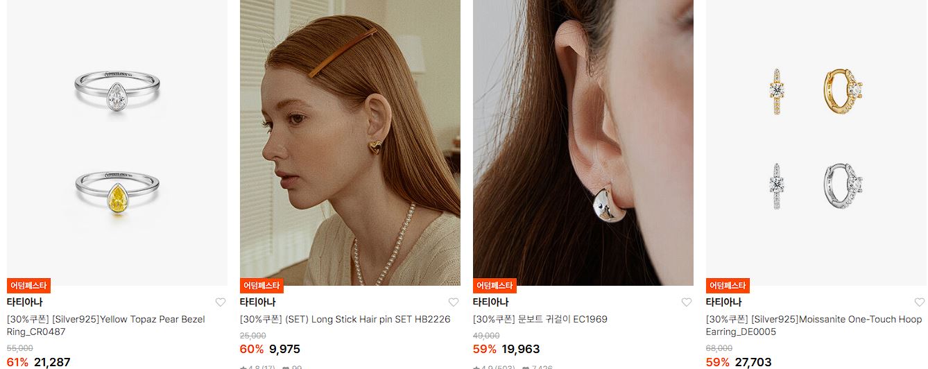 할인 품목 : 반지, 귀걸이, 모자 등