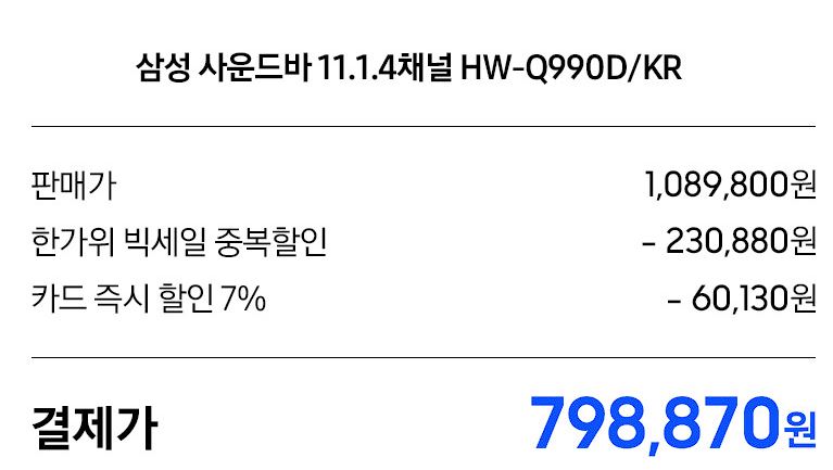 삼성 사운드바 HW-Q990D 할인 판매하네요.
