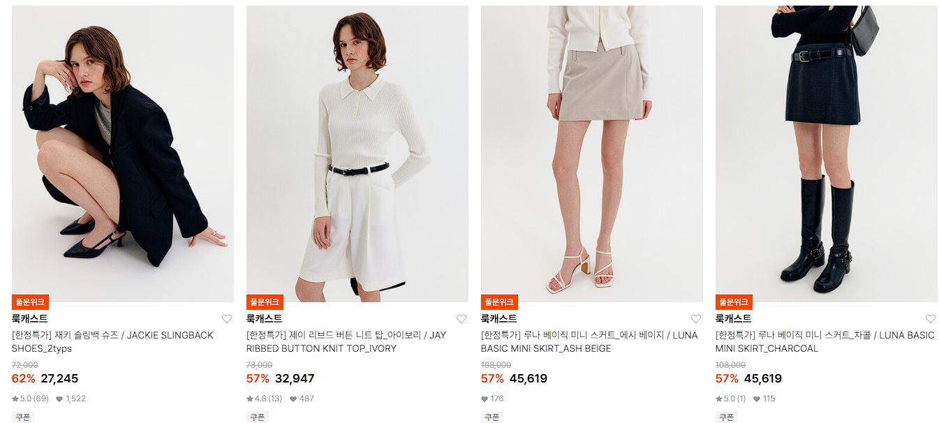 룩캐스트 다양한 제품을 할인 판매하네요.