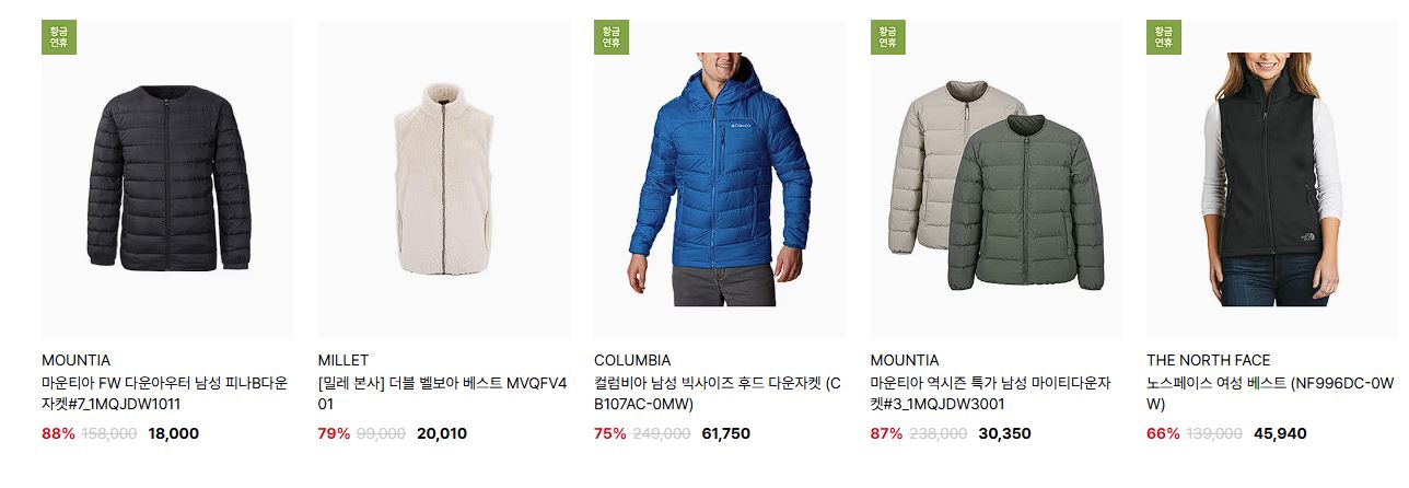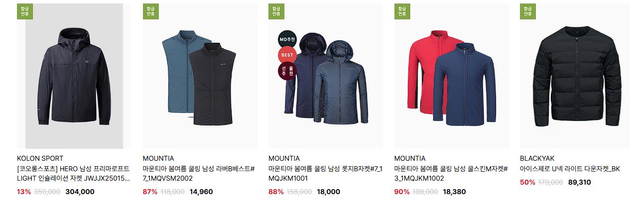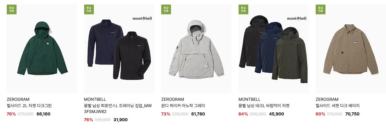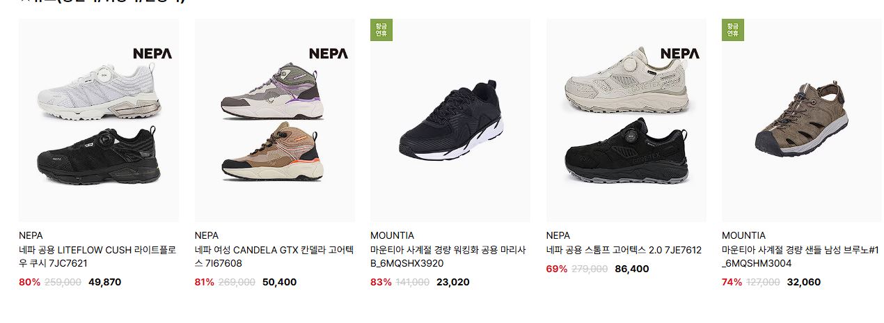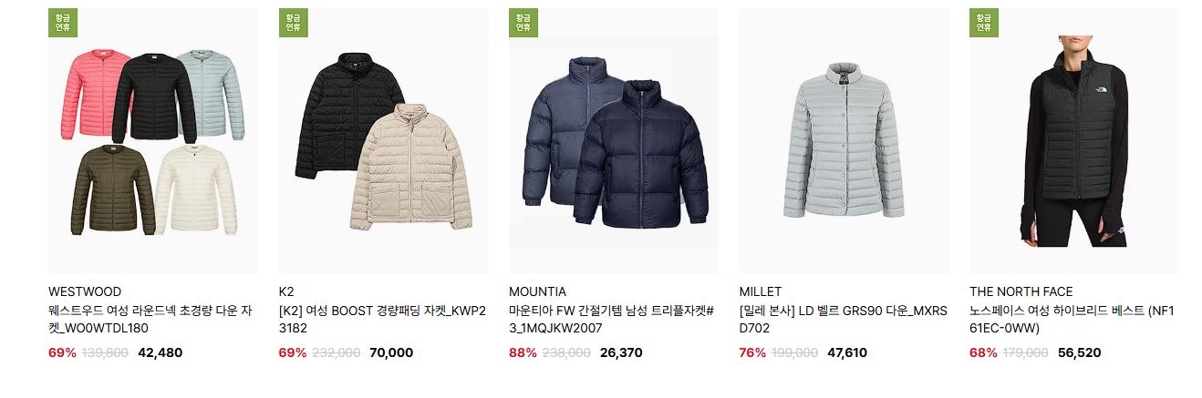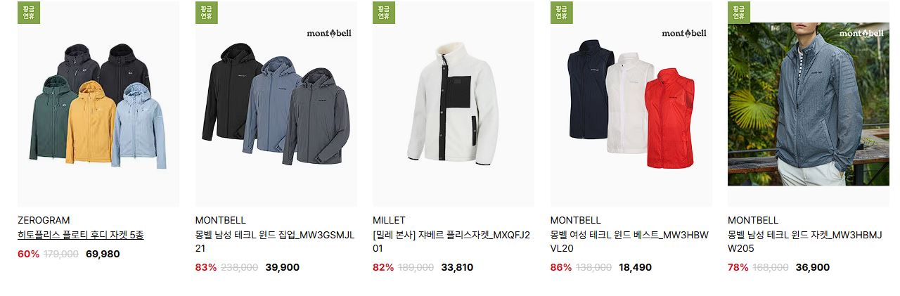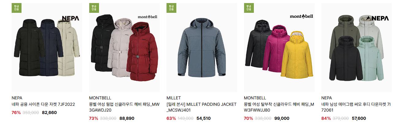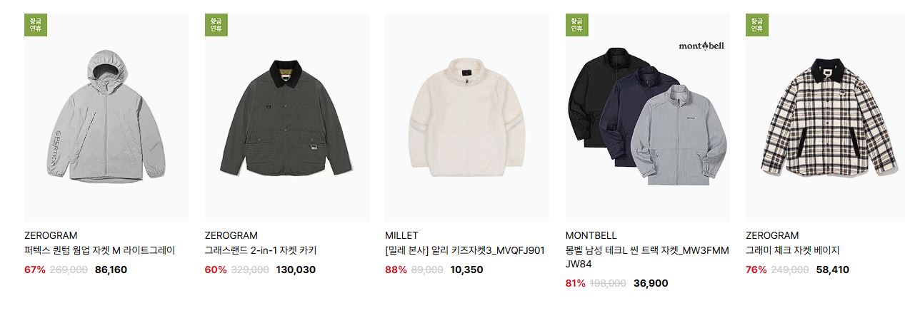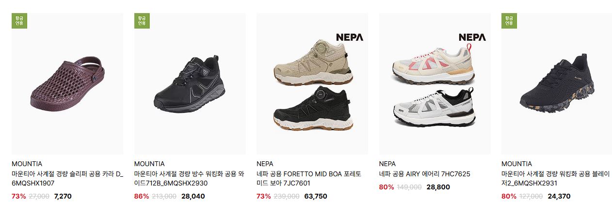 할인 품목 : 점퍼, 자켓, 운동화 등