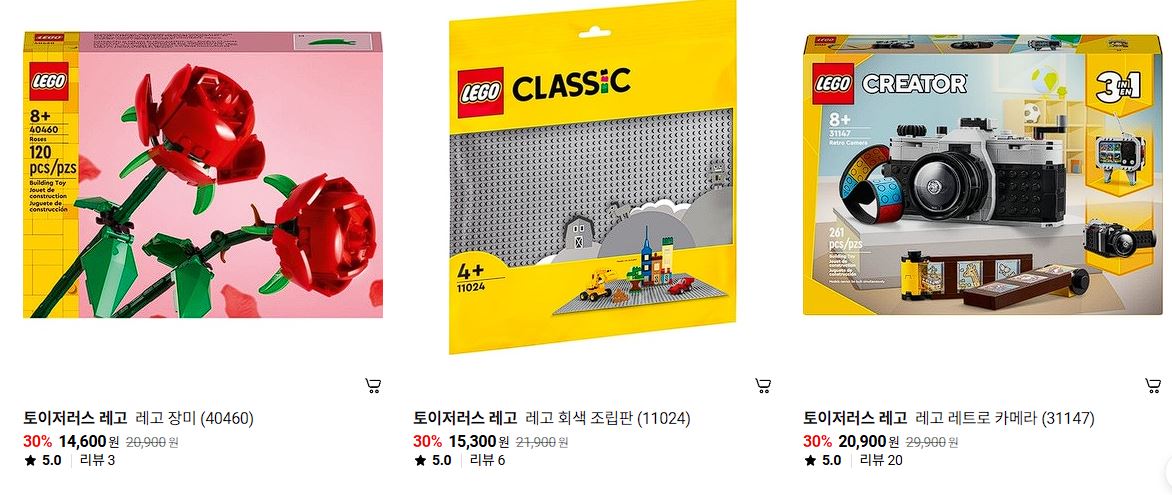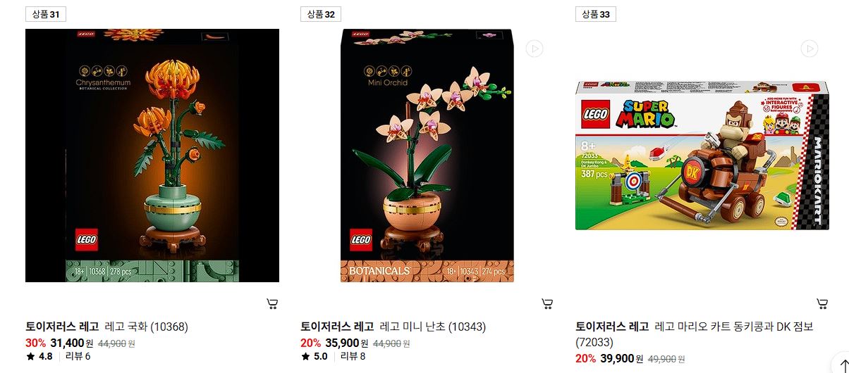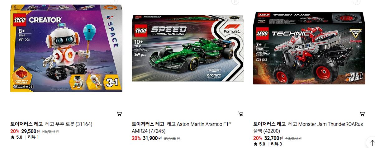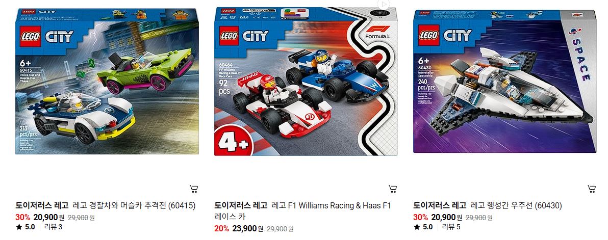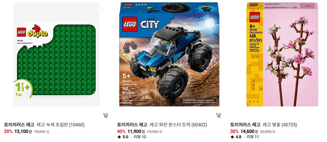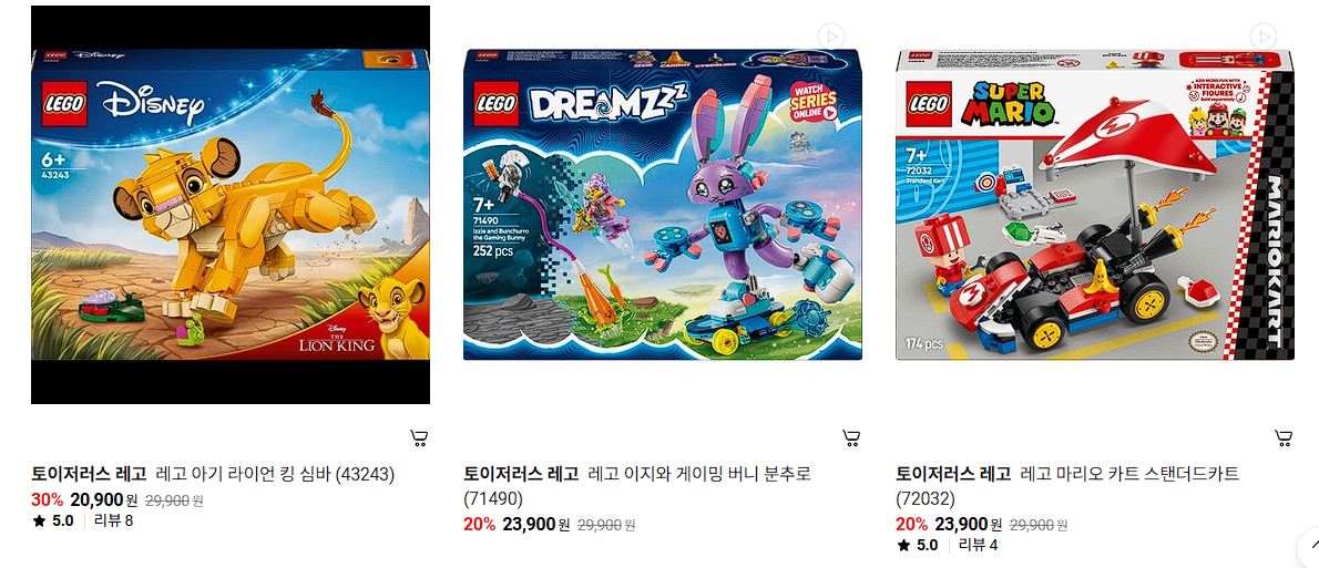 할인 품목 : 자동차, 스타워즈, 슈퍼마리오 등