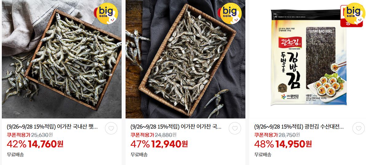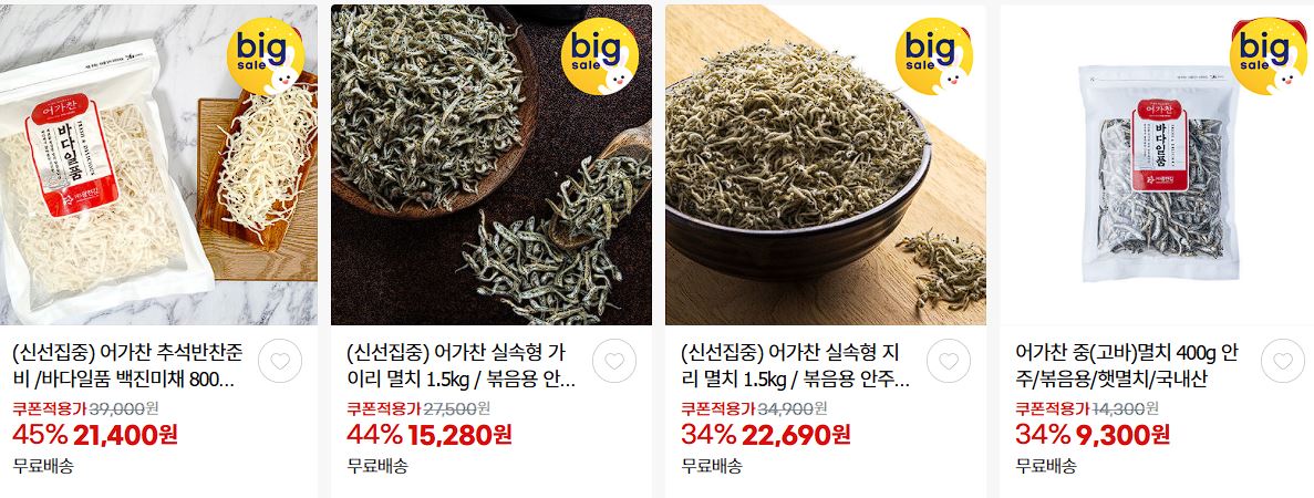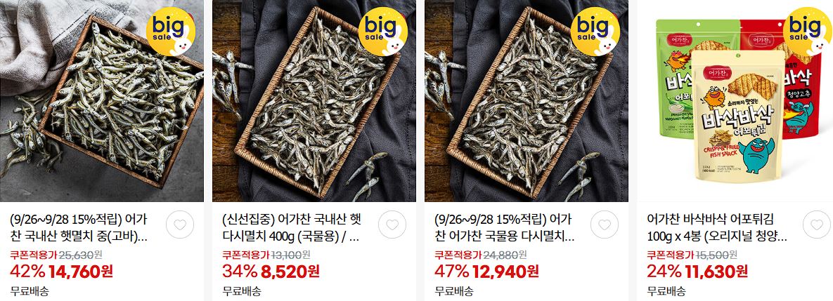 할인 품목 : 김, 백진미채, 어포튀김 등