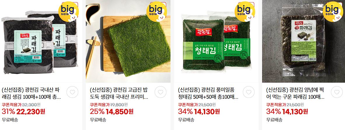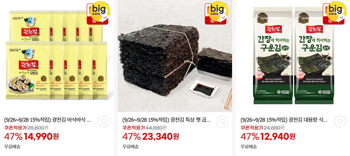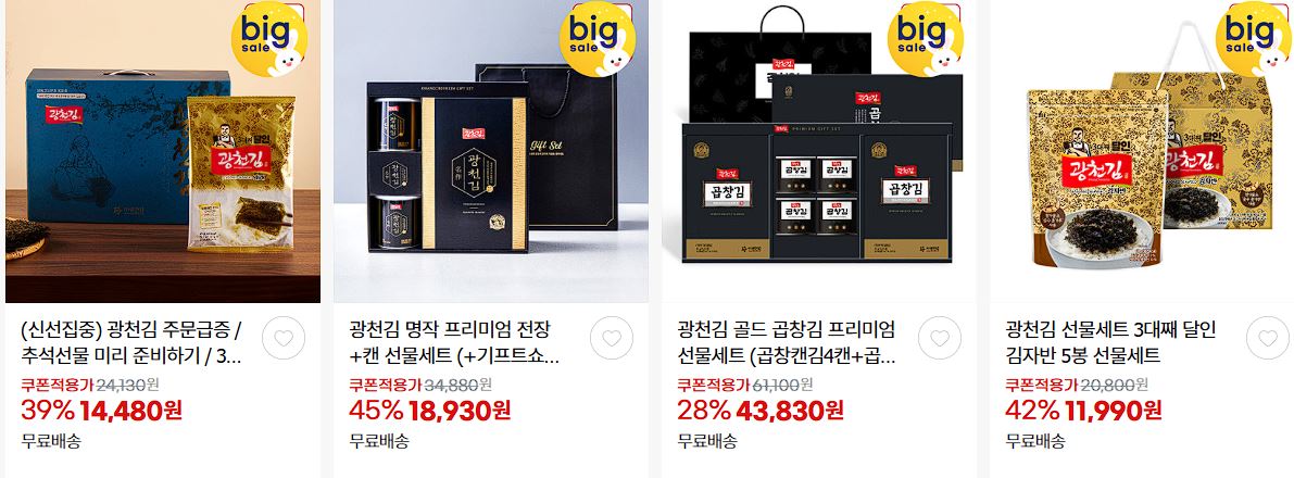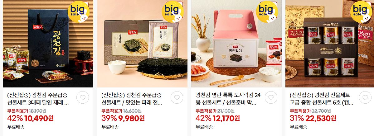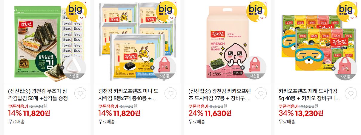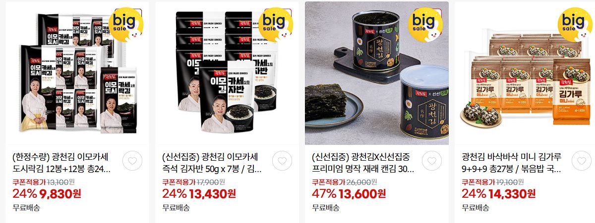 광천김 다양한 제품을 할인 판매하네요.