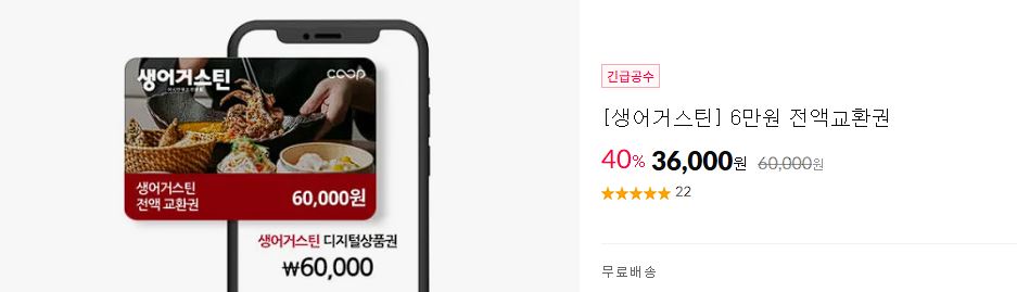 생어거스틴 6만원 전액교환권 40% 할인 판매하네요.