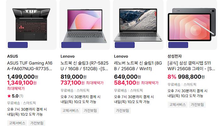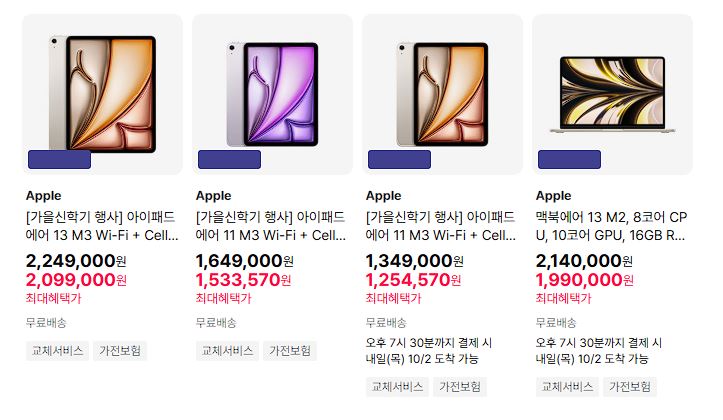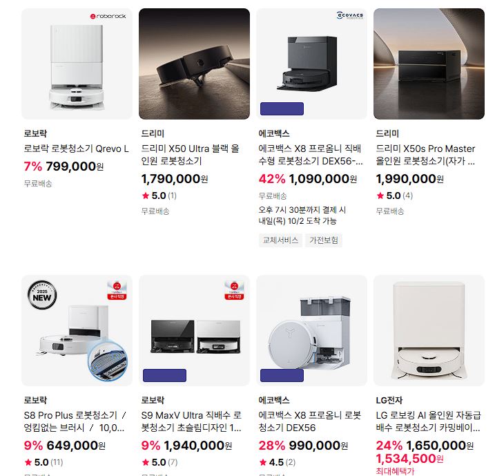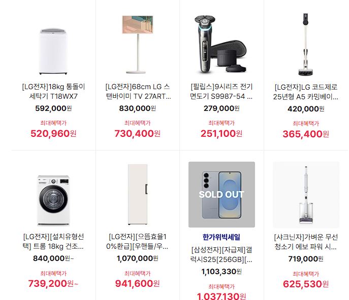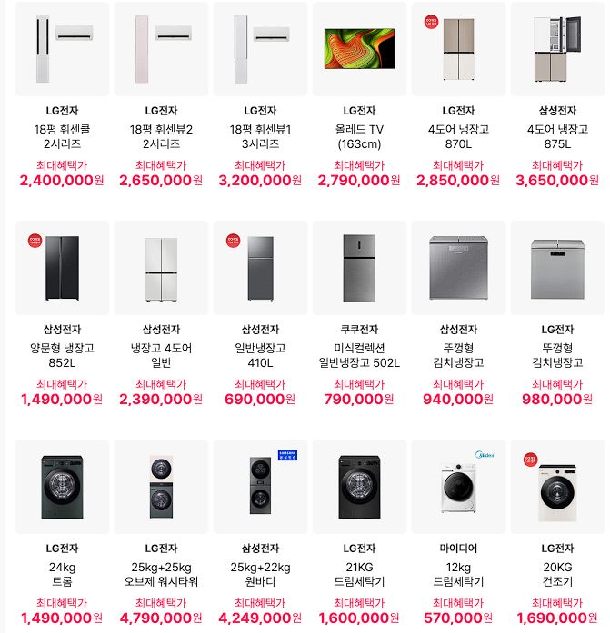 할인 품목 : 세탁기, TV, 로봇청소기 등