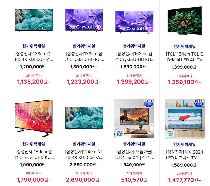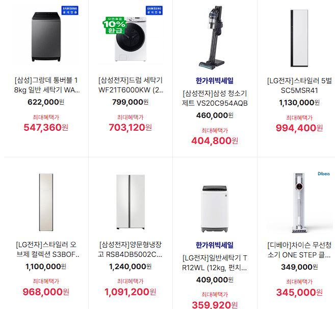 할인 품목 : 세탁기, TV, 로봇청소기 등