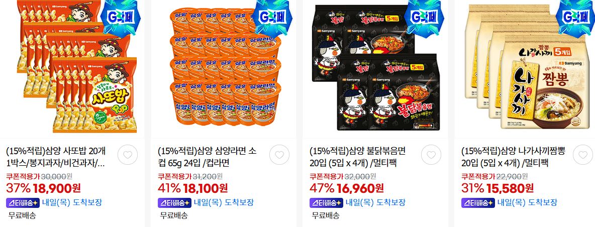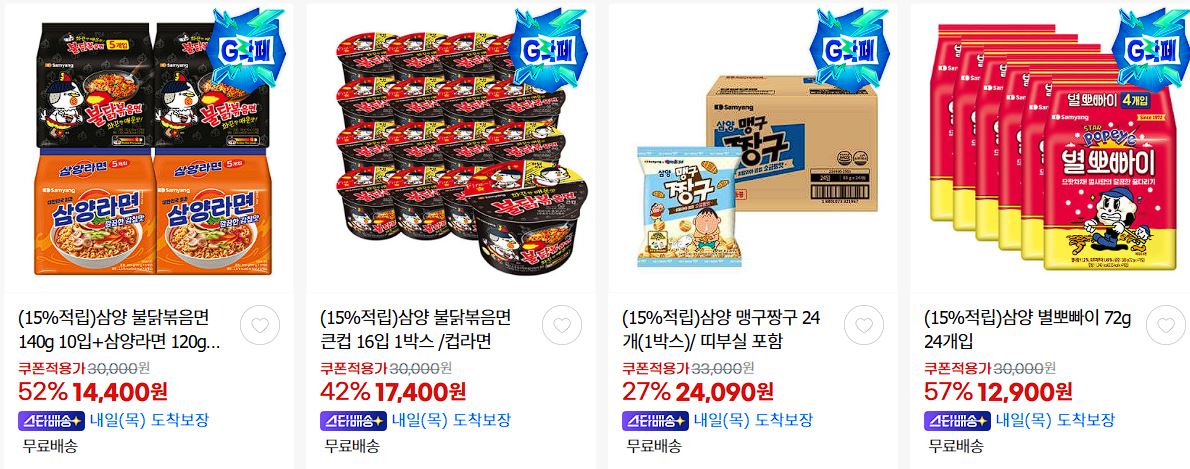 삼양식품 다양한 제품을 할인 판매하네요.