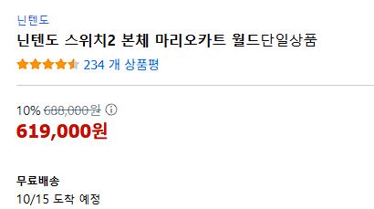 닌텐도 스위치2 본체 마리오카트 월드 세트 10% 할인 판매하네요.