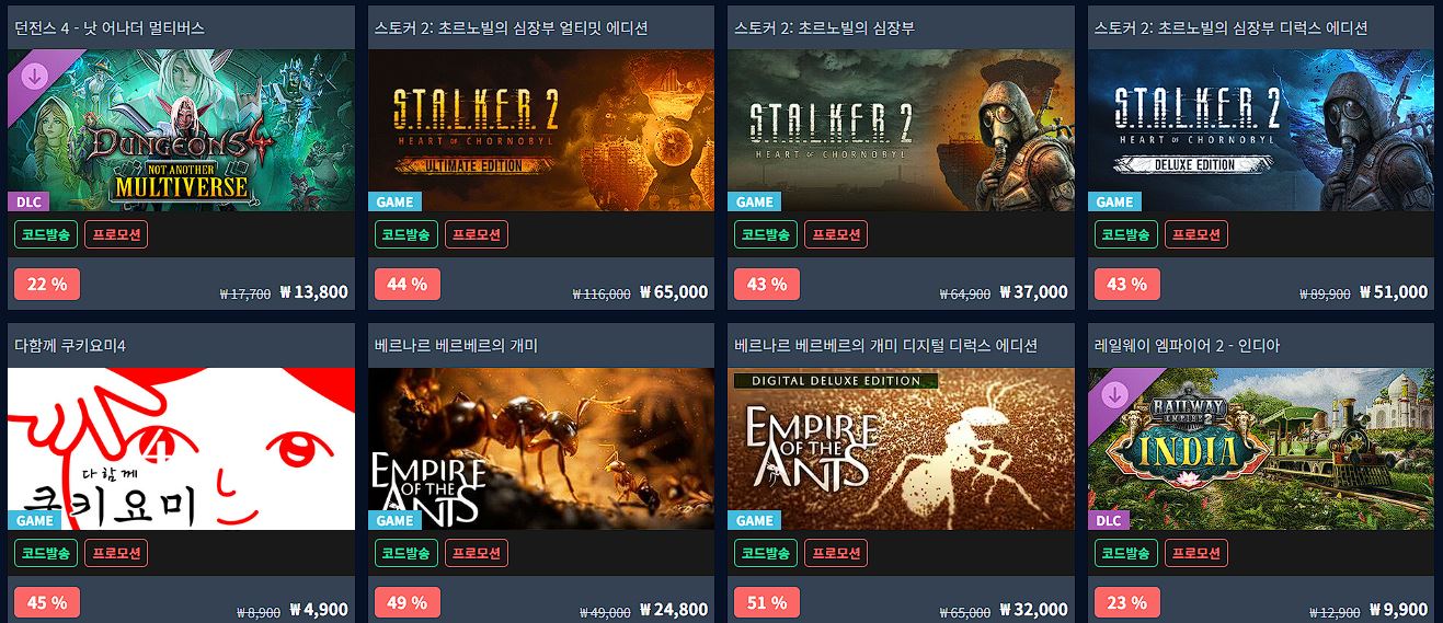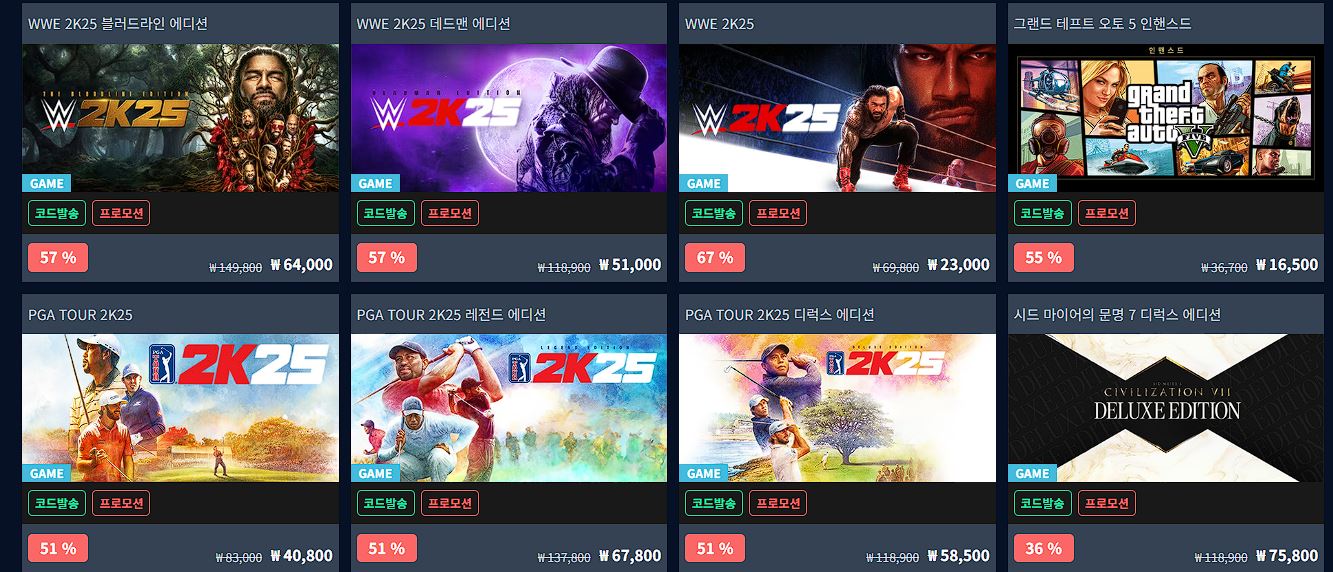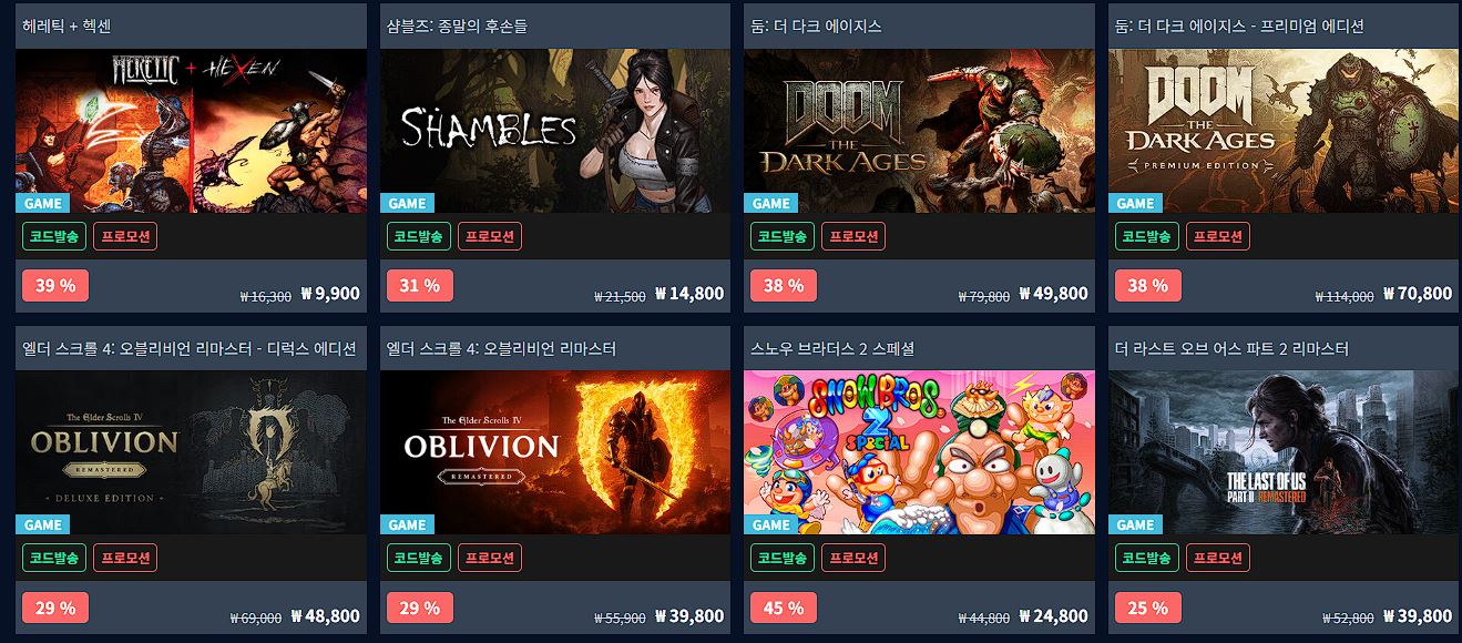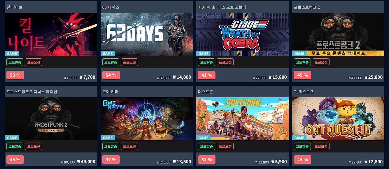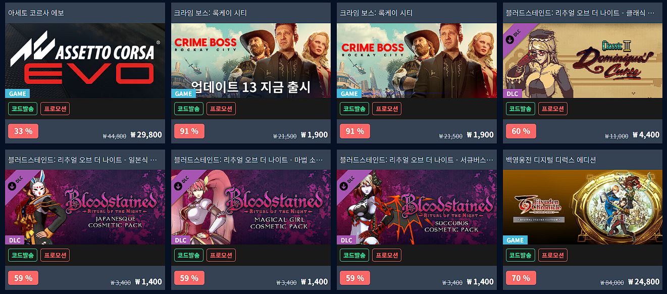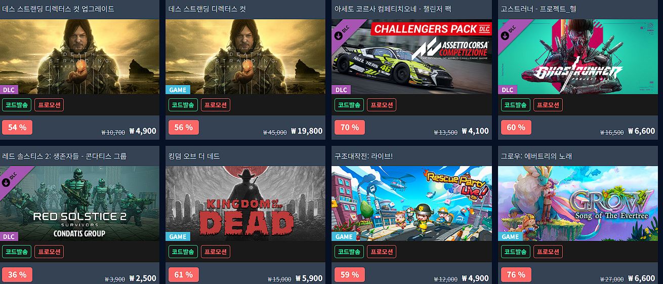 다이렉트 게임즈 다양한 게임을 할인 판매하네요.