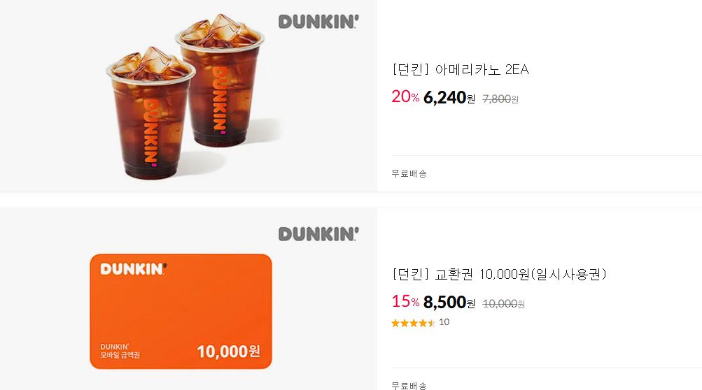 던킨 다양한 제품을 할인 판매하네요.