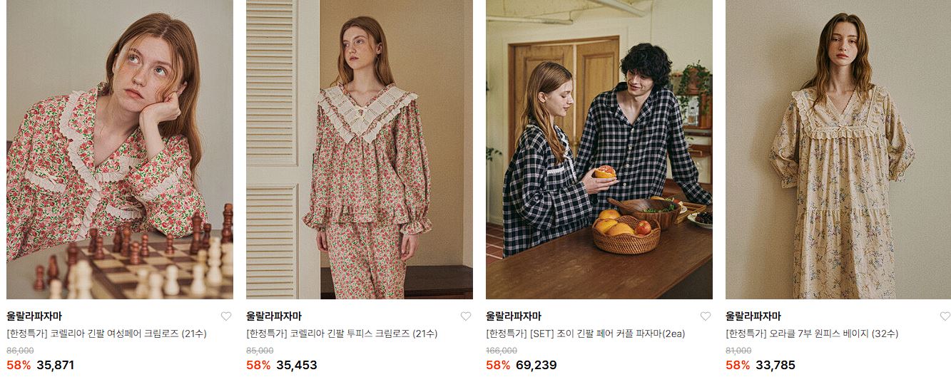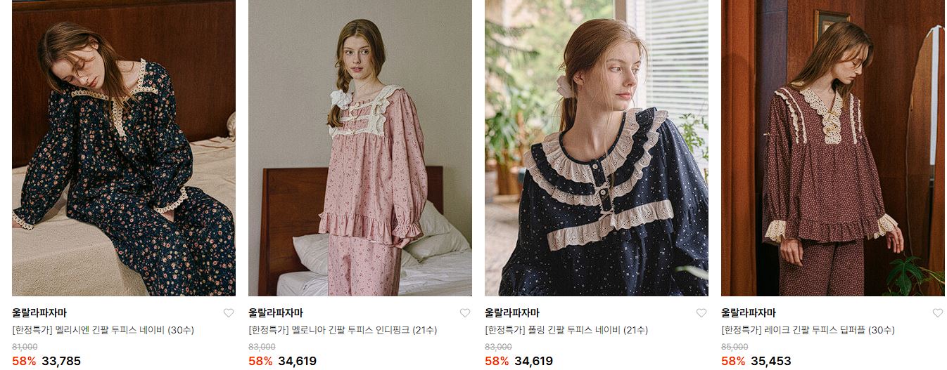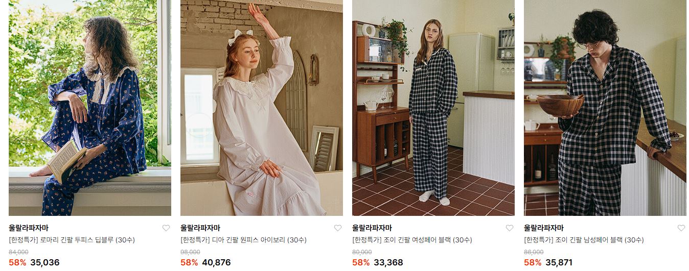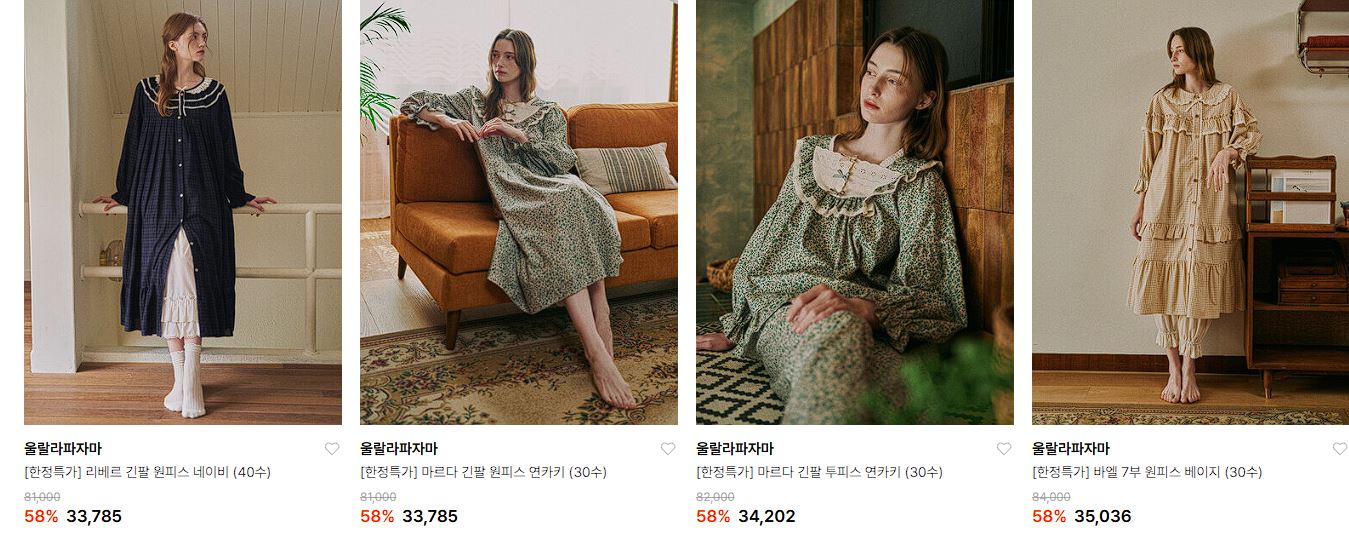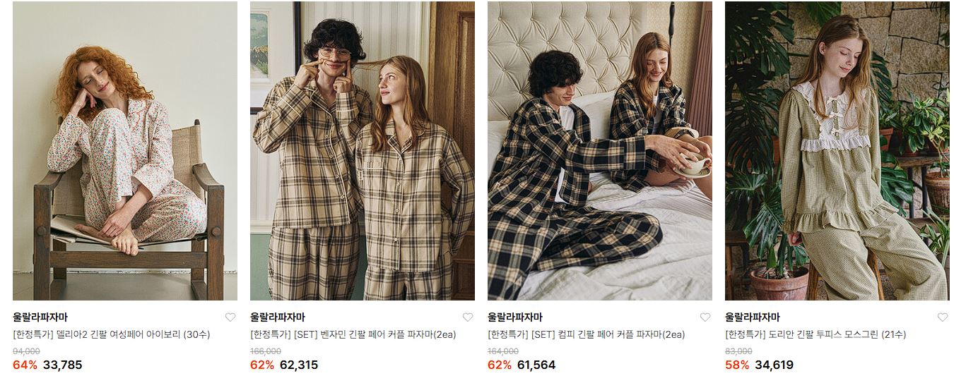 울랄라파자마 다양한 제품을 할인 판매하네요.