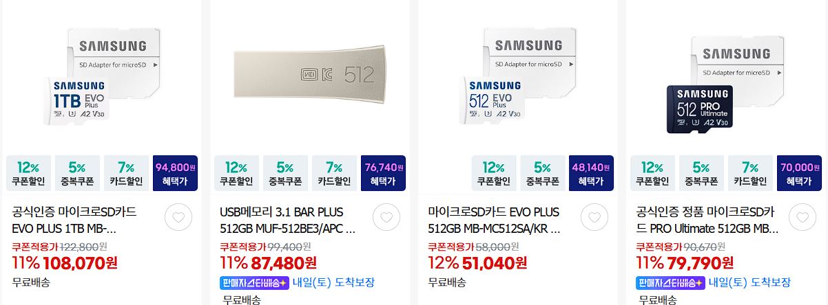 할인 품목 : 휴대폰, 마이크로SD카드 등