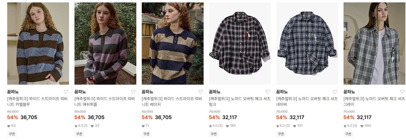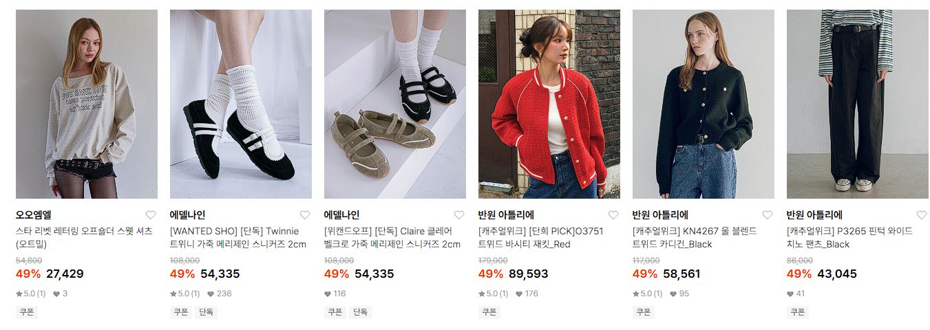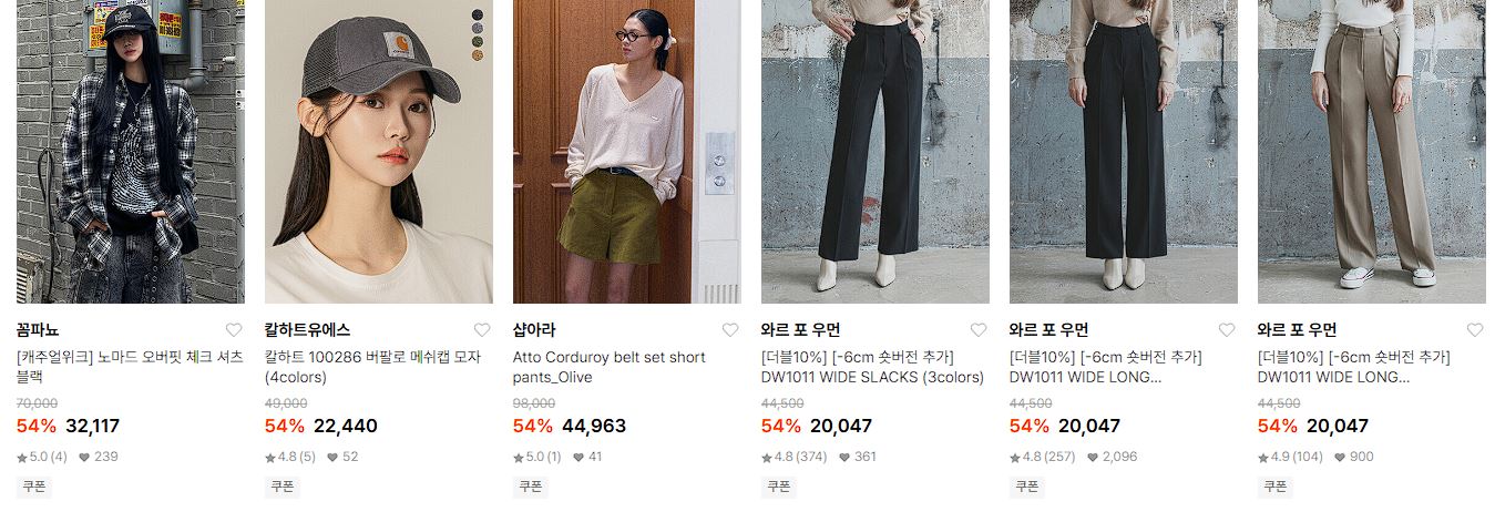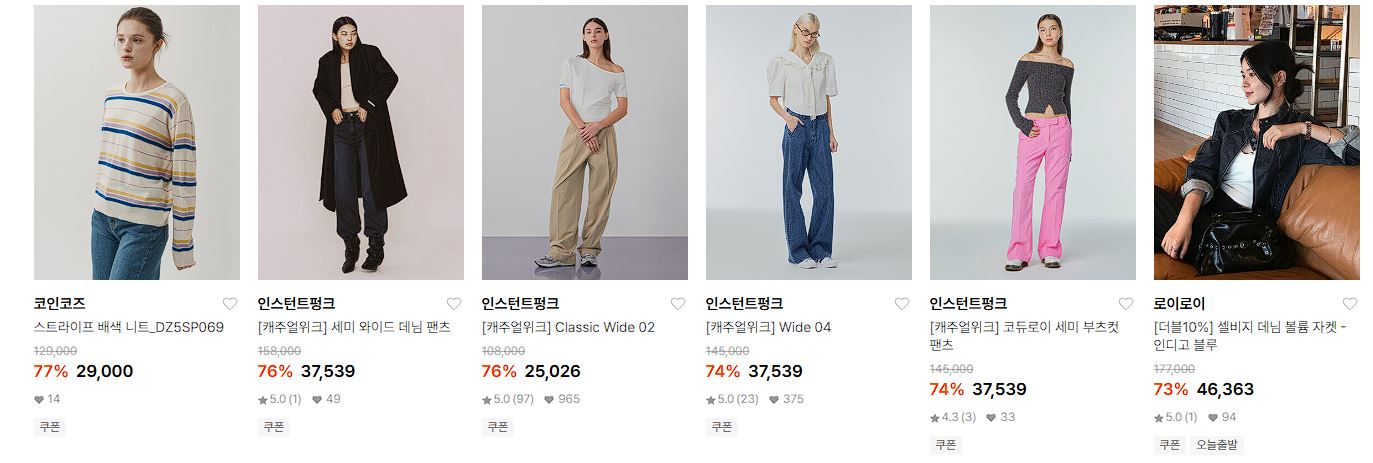 할인 품목 : 티셔츠, 자켓, 팬츠 등