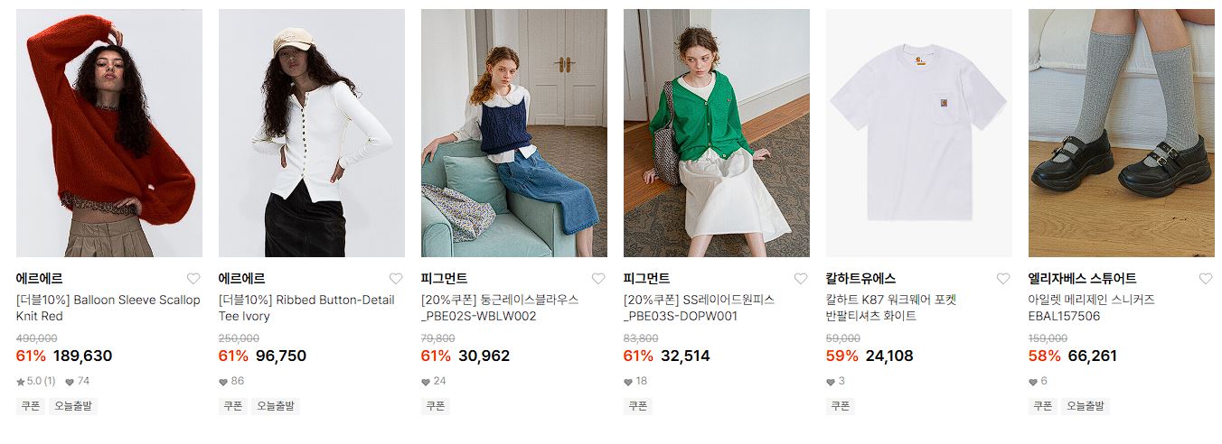 할인 품목 : 티셔츠, 자켓, 팬츠 등