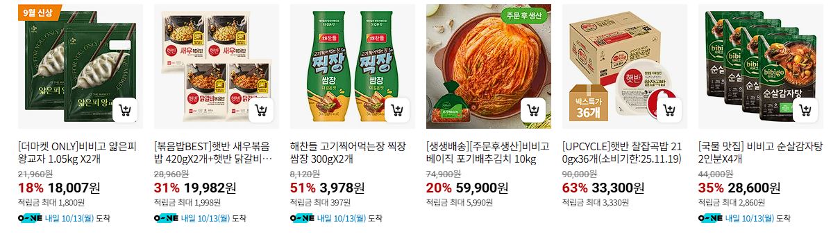 할인 품목 : 만두, 햇반, 죽, 김치 등