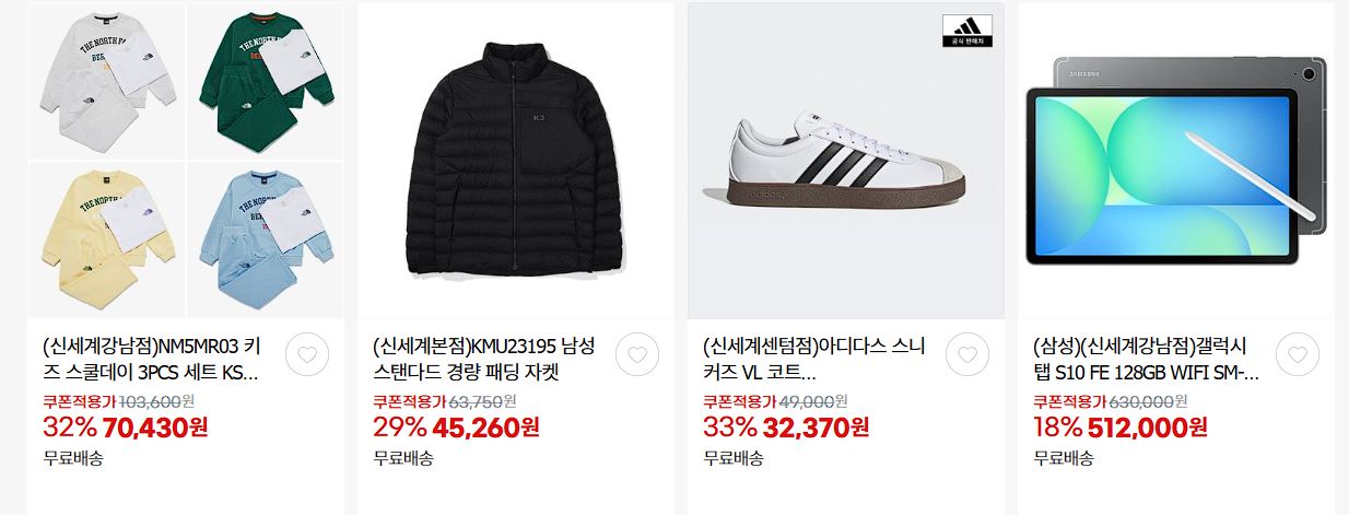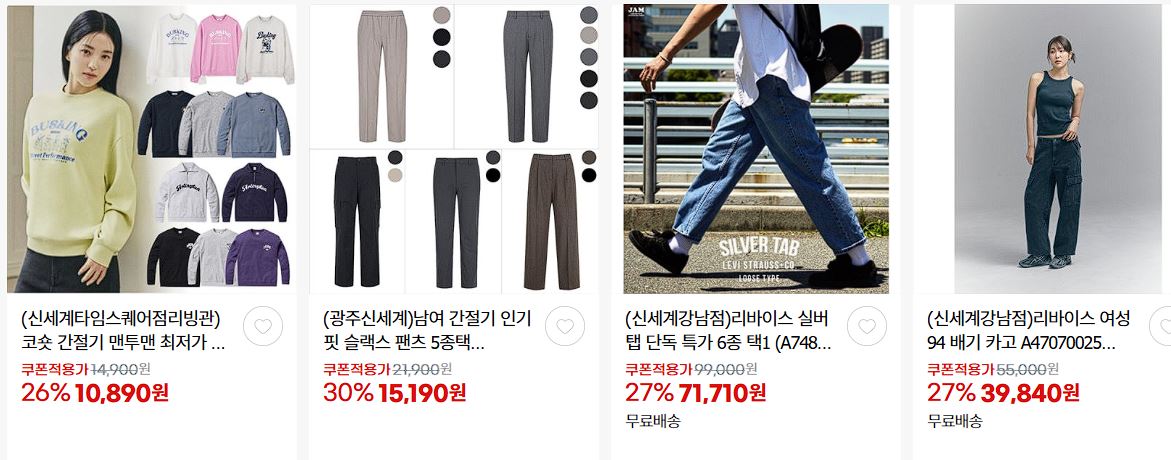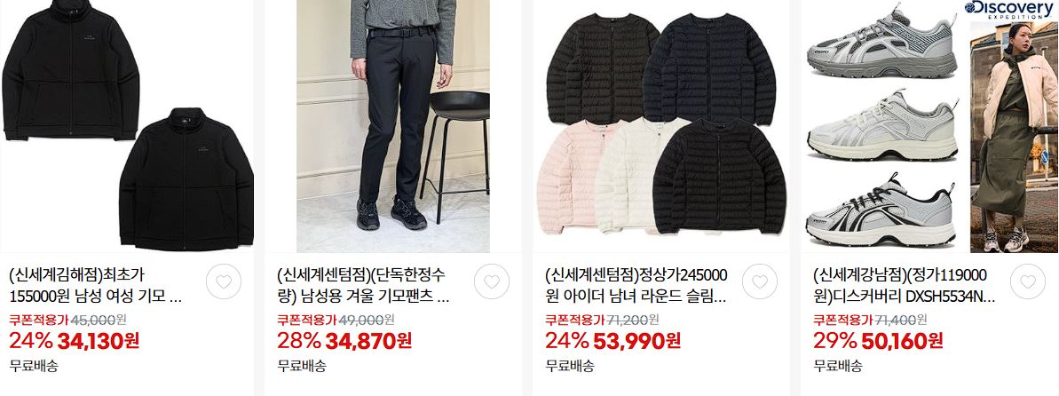 할인 품목 : 의류, 신발, 화장품, 식품 등