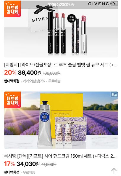 현대홈쇼핑 다양한 제품을 할인 판매하네요.