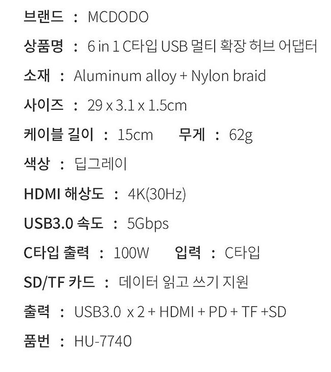 맥도도 6 in 1 C타입 USB 멀티 확장 허브 어댑터 할인 판매하네요.