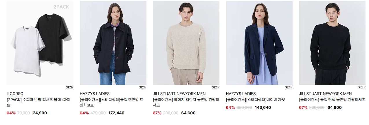 할인 품목 : 티셔츠, 니트, 점퍼 등