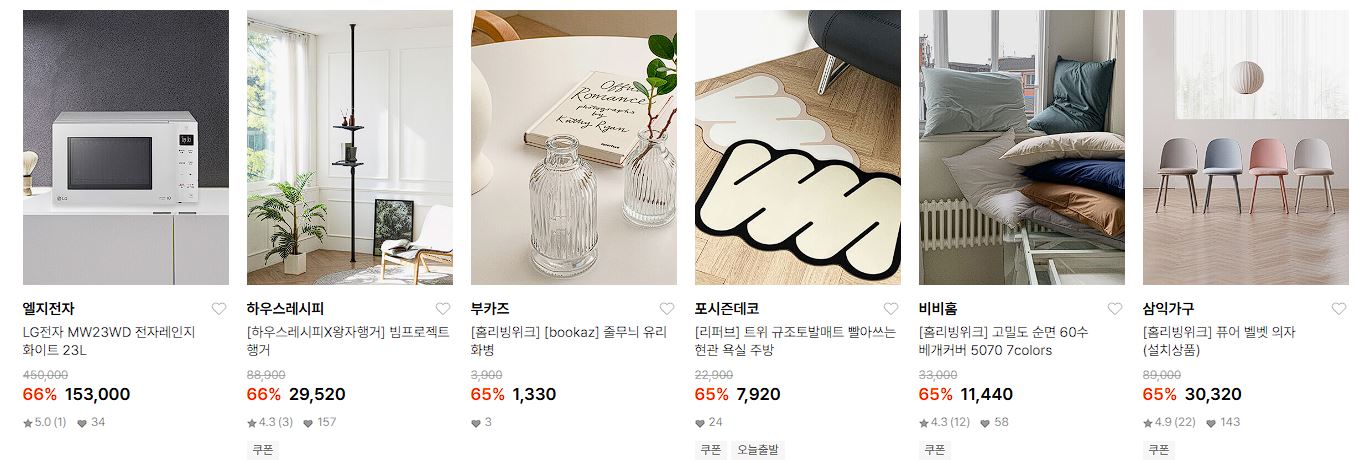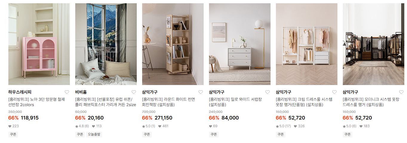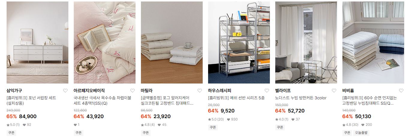 할인 품목 : 가구, 가전, 이불 등