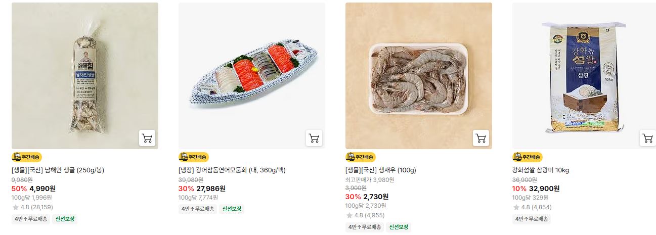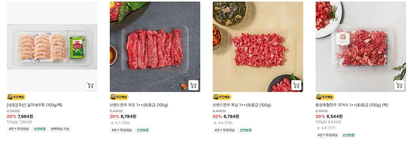 할인 품목 : 회, 소고기, 새우 등