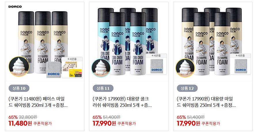 할인 품목 : 면도기, 쉐이빙폼 등