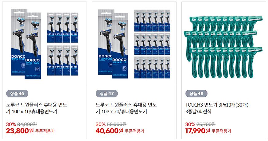도루코 다양한 제품을 할인 판매하네요.