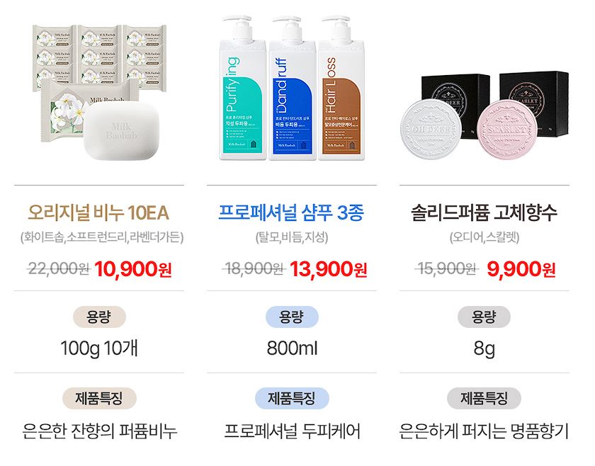 밀크바오밥 다양한 제품을 할인 판매하네요.